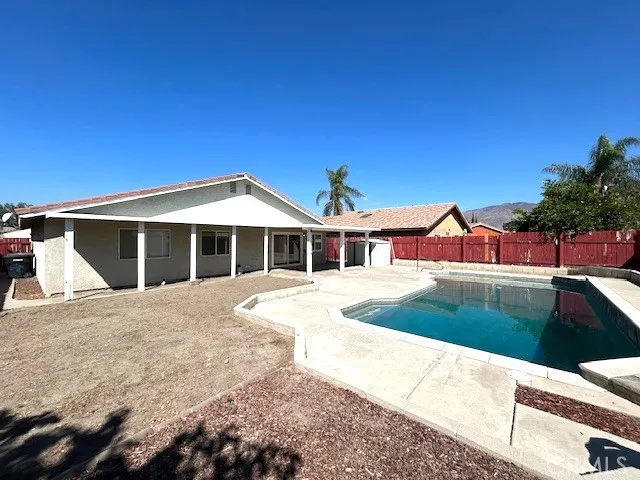 House with POOL on cul-de-sac! Flowing floor plan with double door entry. NEW paint and carpet throughout. Living room with stone fireplace, vaulted ceiling and formal dining area. Kitchen with breakfast bar and granite counter tops open to additional dining nook and adjacent family room with slider to backyard. Primary bedroom with double door entry and double closet doors. Primary bathroom with double sinks and separate toilet room. Ceiling fans throughout. Backyard includes a beautiful "pebble-tek" type pool and covered patio.
