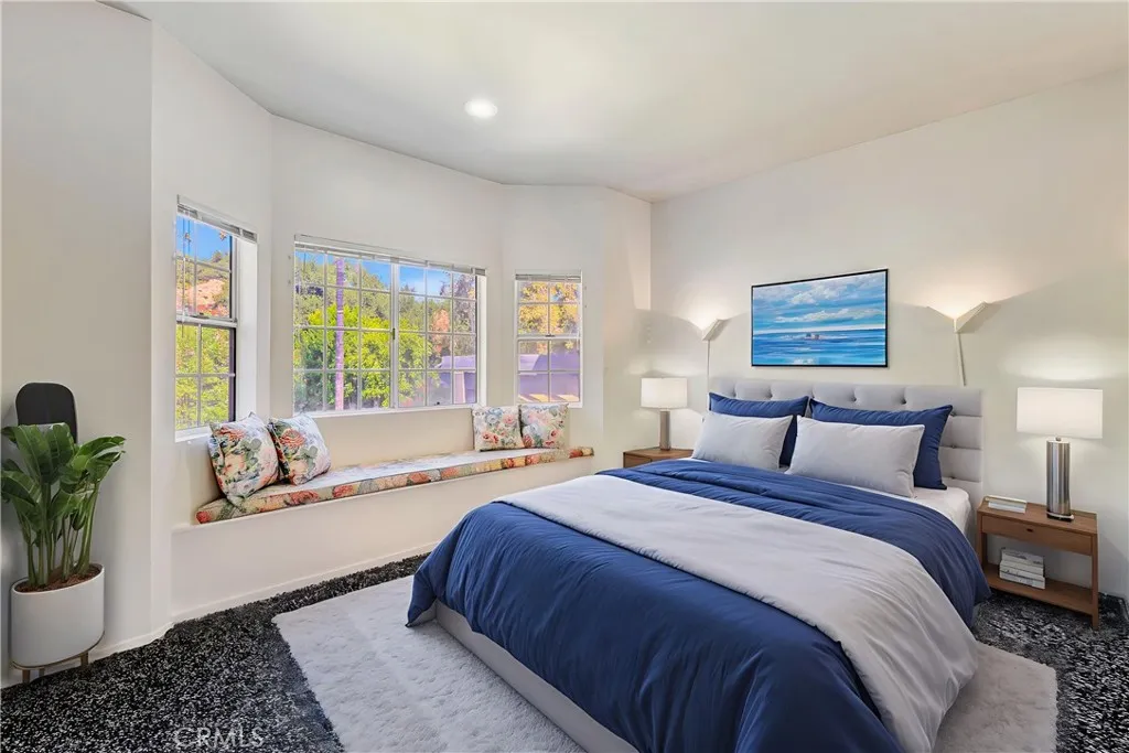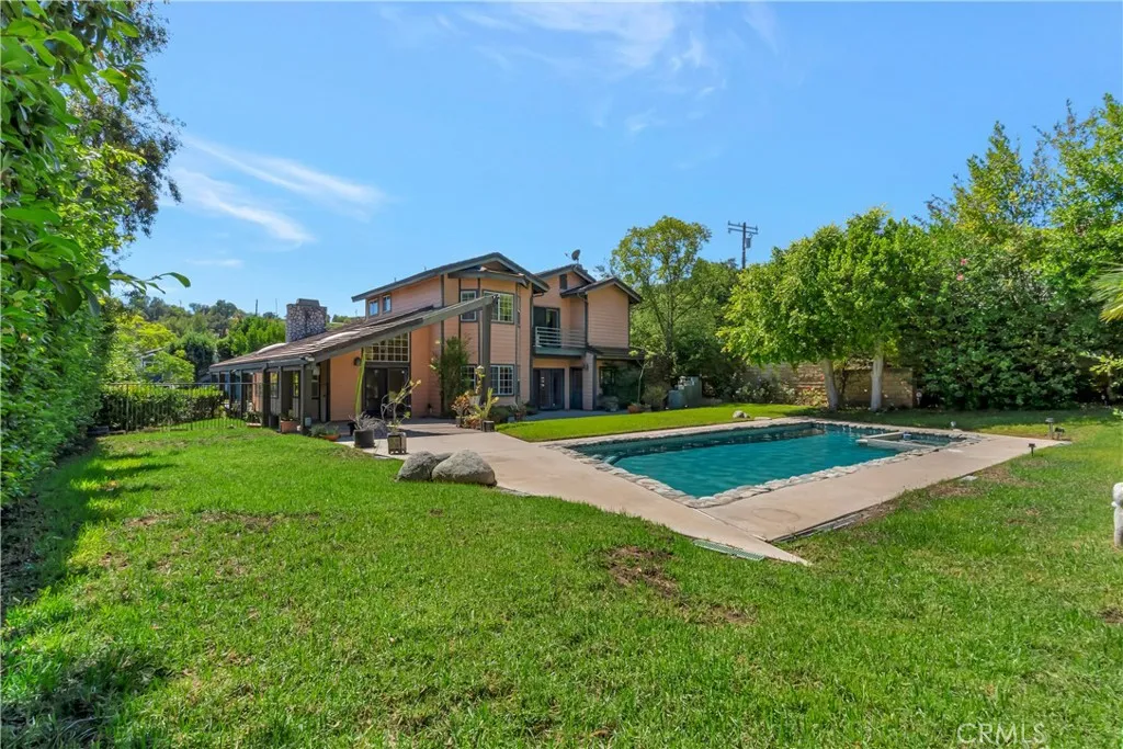 Adjacent to Bell Canyon, this light-filled, custom-built executive pool home in a private, gated enclave of only 15 residences. Situated on nearly a half acre flat lot, this 4,122 sq. ft. 4-bedroom, 3.5-bath offers a sprawling, park-like backyard with sparkling pool, mountain views, and endless space to entertain. The open floor plan showcases grand, light-filled living spaces, including a formal living room with fireplace, a large dining room with yard views, and a welcoming family room with built-in wet bar, refrigerator, and fireplace. The chefs kitchen boasts a center island, breakfast nook, and abundant storage. Inside laundry room and 2 car attached garage, property has an extra large driveway and large closets with built ins. Zoned for horses. A convenient downstairs bedroom suite with private entrance is perfect for guests, a home office, or a private study. Upstairs, the luxurious primary suite offers a step-down sitting area, dual-sided fireplace, large walk-in closet. The spa-like en-suite bath features a deep soaking tub, separate shower, and double vanities. Generous secondary bedrooms complete the home. Permitted attached 504 sq. ft. bonus room, which could be easily used as 5th bedroom, gym or ADU potential as well. Outdoors is your personal oasis ample space for kids to play, gatherings with friends, and lazy afternoons by the pool. Located minutes from dining, shopping, parks, and with easy Valley Circle access to freeways, all within the highly sought-after El Camino High School district. This is a must-see for anyone seeking privacy, elegance, and the ult