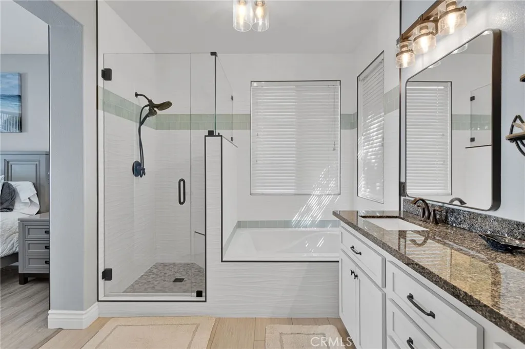 Beach-Inspired Beauty on a Peaceful Cul-de-Sac. Welcome to your light filled coastal retreat! This breezy three bedroom home offers the perfect blend of relaxed elegance and everyday convenience without Mello-Roos or HOA fees. Relax on the charming front porch or entertain with ease in the stylish kitchen featuring a spacious island that invites gatherings and flows seamlessly into the family room, complete with a modern fireplace. Thoughtful upgrades like a remodeled master bathroom, mirror closet doors, and custom shelving with drawers elevate both style and function. The tranquil primary suite offers a private barn door entry, sliding doors to the backyard. A dedicated laundry room and attached two-car garage add to the home's practical comforts. Nestled on a tree-lined cul-de-sac, this gem offers peace and quiet with unbeatable accessibility. Located near the 15 freeway, you're approximately one mile from Victoria Gardens, where top restaurants, shopping and entertainment await. This is more than a home - it's a lifestyle. Move-in ready and waiting for you to call this your home!