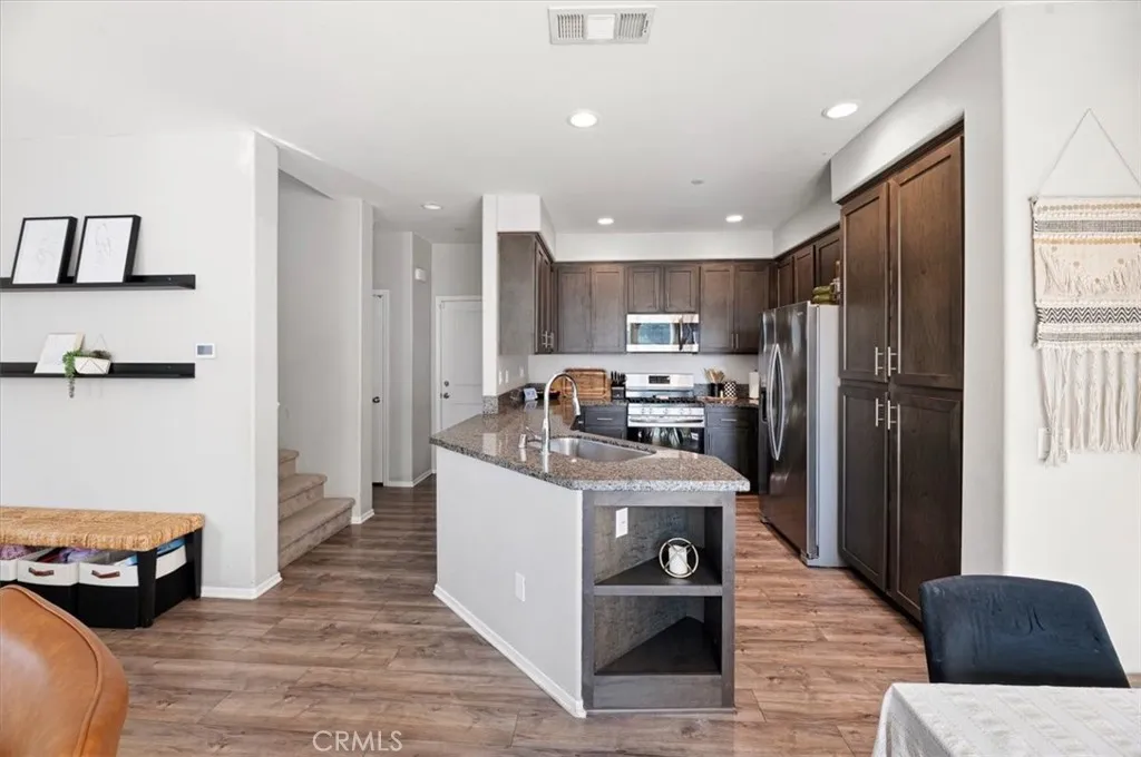 PRICE IMPROVEMENT! Motivated sellers just adjusted the price making this beautiful home an even better value. Dont miss your chance! Welcome to Granite Ridge, a sought-after gated community in Jurupa Valley! This 2018-built 4 bedroom, 2.5 bath detached house offers the perfect blend of modern design and low-maintenance living. Step inside to an inviting open floor plan with luxury vinyl plank flooring, custom paint, and abundant natural light. The chefs kitchen boasts shaker-style cabinets, granite countertops, stainless steel appliances, water filtration system, and convenient built-in trash/recycling bins. Upstairs youll find all 4 bedrooms, a spacious laundry room, and a primary suite with walk-in closet, dual vanities, soaking tub, and separate shower. Additional features include tankless water heater, central HVAC, and attached 2-car garage with an EV car charging option. Outside, enjoy a premium courtyard driveway and low-maintenance yard with vinyl fencing and concrete patio. Energy saving solar panels. The Granite Ridge community offers private parks, controlled access, and landscaped common areas, all with a low HOA. Conveniently located near shopping, dining, schools, and freeway access. Dont miss this turnkey home that truly has it all!