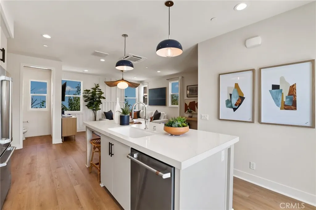 TURNKEY, UPGRADED, PROFESSIONAL INTERIOR DESIGNED, FURNISHED MODEL HOME FOR SALE - ONE OF THE LARGEST PRIVATE PATIOS WITHIN THE COMMUNITY, OVERLOOKING THE FUTURE GREENBELT/PARK AREA! Just a quick cruise down Main Street and you're where you want to be - HB's newest community built by a multi-generational local family builder. This plan 2 features and entry level office/studio space right off the two bay garage. Upstairs you'll love the great room design with the large island and private deck. Plus two spacious bedrooms, each with its own en-suite bathroom, and a convenient top-floor laundry. Plus, with built in solar, this home combines energy efficiency with contemporary design. Buyers will have the opportunity to customize their home at the Design Center after purchase. Experience the perfect blend of style, functionality and eco-friendly living all in the legendary Surf City, USA. Huntington Beach offers excellent schools plus low taxes and No Mello Roos! These stunning SOLAR POWERED brand-new townhomes are designed around your busy, lock & leave -get to the beach- lifestyle. Pictures are of Actual (Model) Home