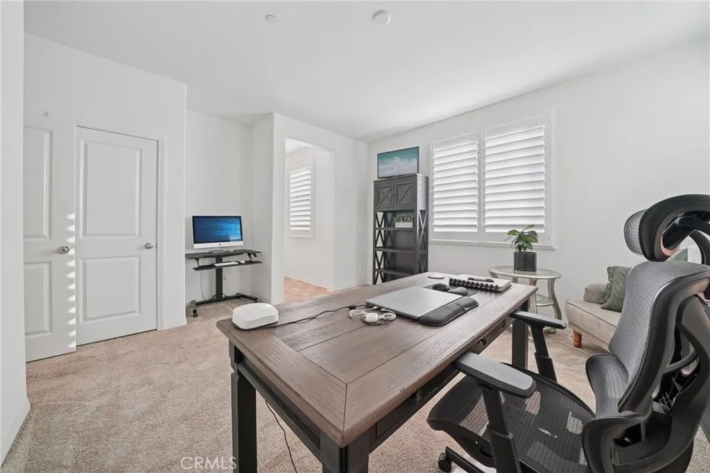 Welcome to this beautifully upgraded corner-unit condo in the gated Aspen Hills Community of Moreno Valley. Offering 3 bedrooms and 3.5 bathrooms, this rare floor plan includes two primary suites with spacious walk-in closets, an inviting private courtyard, and an oversized 2-car garage. The updated kitchen is appointed with granite countertops and modern cabinetry, while the open-concept living and dining areas are filled with natural light, creating a warm and welcoming atmosphere. Additional features include upgraded shutters on every window for a clean, modern look. Situated in a desirable lakefront community, residents enjoy resort-style amenities such as a swimming pool, spa, and secure gated access. Located near shopping, dining, and Riverside Community College, this move-in-ready home combines comfort, convenience, and lifestyletruly turnkey in one of Moreno Valleys most sought-after neighborhoods!