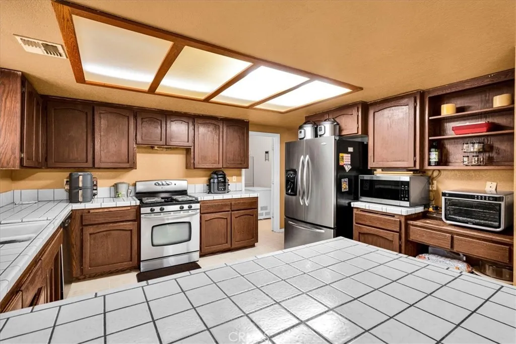 Spacious 3 bedroom, 2 bathroom home with 1750 sq. ft of comfortable living space. This well-kept home has large open rooms, high ceilings and a beautiful fireplace in the living room, for our soon to be cold desert evenings. The large kitchen has tile counter tops and stainless steel appliances perfect for cooking and entertaining. Enjoy the desert views and being just minutes to town. The fenced backyard is great for pets! Covered patios in both the front and back, and a 2 car attached garage. This home is priced to sell. Call for your private showing!