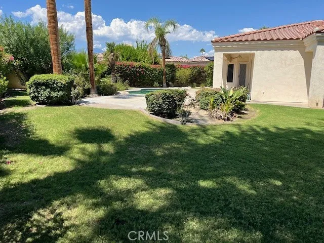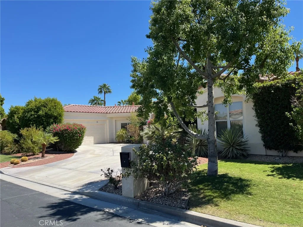 Former Celebrity Home! Welcome to this lovely single family home located at 81 Appian Way in the fashionable city of Palm Desert, CA. Built in 1998, this home is located in the cozy gated community of Tierra Vista. This home has a large wrap-around back yard with mature shade trees and excellent privacy, framed by panoramic south and west facing mountain views. A stand-alone guest house provides one bedroom and one full bath, with it's own private patio and garden area - perfect for hosting family and friends. What's to like? 5 bedrooms, great floor plan,12 foot ceilings, full size kitchen, wrap-around mountain views, large backyard with fruit trees, shade trees, separate patios, pool and jacuzzi. The exterior of the home boasts beautiful landscaping and a charming curb appeal. Step inside to find a well-designed floor plan with high ceilings, large windows and plenty of natural light. The home has two fireplaces in the living room and family room. The large chef's kitchen has granite countertops with plenty of cabinet space, and is nicely separated from the living areas. The dining area has an expansive view of the backyard garden and western mountains beyond - a scenic spot for enjoying meals with family and friends. The spacious master bedroom occupies a separate wing of the house with south facing mountain views. The master suite features a luxurious en-suite bathroom, a large soaking tub, dual vanities, a separate walk-in shower and large walk-in closet. The additional 4 bedrooms are generously sized and feature open garden and mountain views. Outside, the backyard is