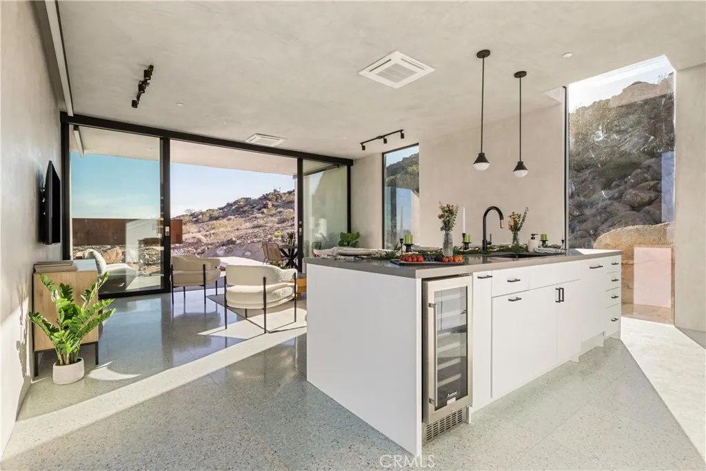 A rare architectural statement built directly into Joshua Trees iconic boulders, The Prism House lives like a private nature reserve a seamless extension of the boulders themselves. Set on 5 acres that back up to protected, boulder-strewn land, it lives like 100+, offering complete privacy and an otherworldly connection to the landscape, all just 10 minutes from town. Designed by URBARC Architects and developed by KUD Development, this one-of-a-kind retreat was completed in 2022 using the cutting-edge RSG3D concrete and foam system delivering unmatched strength, insulation, and energy efficiency. Every inch reflects design intention and craftsmanship: JennAir appliances, Eso Surfaces custom terrazzo tile, Fleetwood sliders, riftsawn oak cabinetry and doors, electric window blinds, custom LED lighting, and a built-in library with a reading nook that frames the desert light. The layout features dual primary suites plus a powder room, balancing flexibility for both personal use and high-end short-term rental income. Already a six-figure income generator, the home comes fully equipped with its branding, professional photography and video, Instagram presence, and an established luxury rental operation making it a true turnkey opportunity. Recognized on a global stage, The Prism House earned the Platinum Winner in Household Architecture at the International Architecture & Design Awards 2025 (IADA) and the Peoples Choice Award 2024 from the LOOP Design Awards. Qualifying for Airbnb Luxe (one of only a few in the desert) further elevates its prestige and earning potential. A rar
