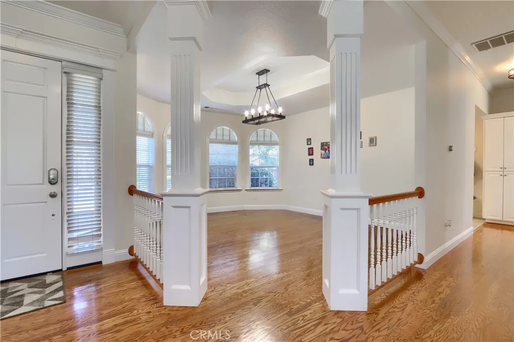 On the 6th fairway in River Creek Golf Course, this custom 5-bed/4-bath, 3,050 sq. ft. home on 1.02 acres includes a separate bonus room with full bath and its own split HVAC, plus a unique drive-through breezeway separating the bonus room, garage from the main residence. A spacious great room, with coffered ceilings, centers around a raised-hearth wood-burning fireplace, while the primary suite features a custom built-in propane fireplace. The upgraded kitchen offers granite countertops, new paint, propane cooktop, double ovens, and a trash compactor, with a casual breakfast nook and a formal dining room nearby complete with a San Miguel Mission-style columns. Throughout are carpet, tile, laminate wood, and stained concrete floors with custom baseboards and crown molding, panel and custom doors. Practical comforts include two standard water heaters (one at each end of the home), two separate HVAC systems, a centrally located laundry room near the bedrooms, RV parking, underground utilities, gutters, sprinklers for the landscaped yard, and a generator hookup. Located in beautiful Ahwahnee River Creek Estates,near downtown Oakhurst with quick access to Bass Lake and Yosemite National Park.