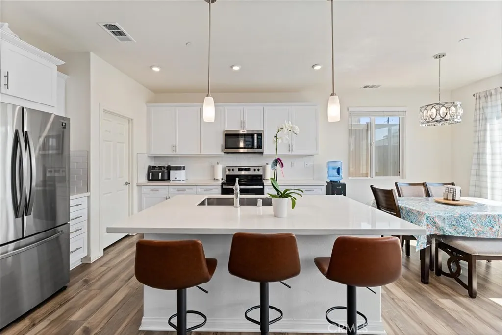 Welcome to this stunning 4-bedroomed, 3-bath home in Lake Elsinore! Built in 2022, this 2,004 sq ft two-story features an open-concept kitchen, a convenient downstairs bedroom, and a beautifully remodeled backyard ideal for entertaining. Energy-efficient solar panels help lower utility costs, while the spacious 2-car garage includes an EV charger and plenty of room for your toys. Additional highlights include washer/dryer room, with Modern finishes through the house. Close to Freeways, restaurants, shopping. Move-in ready and designed for comfort and convenience! Don't miss this incredible opportunity. Schedule your tour today!