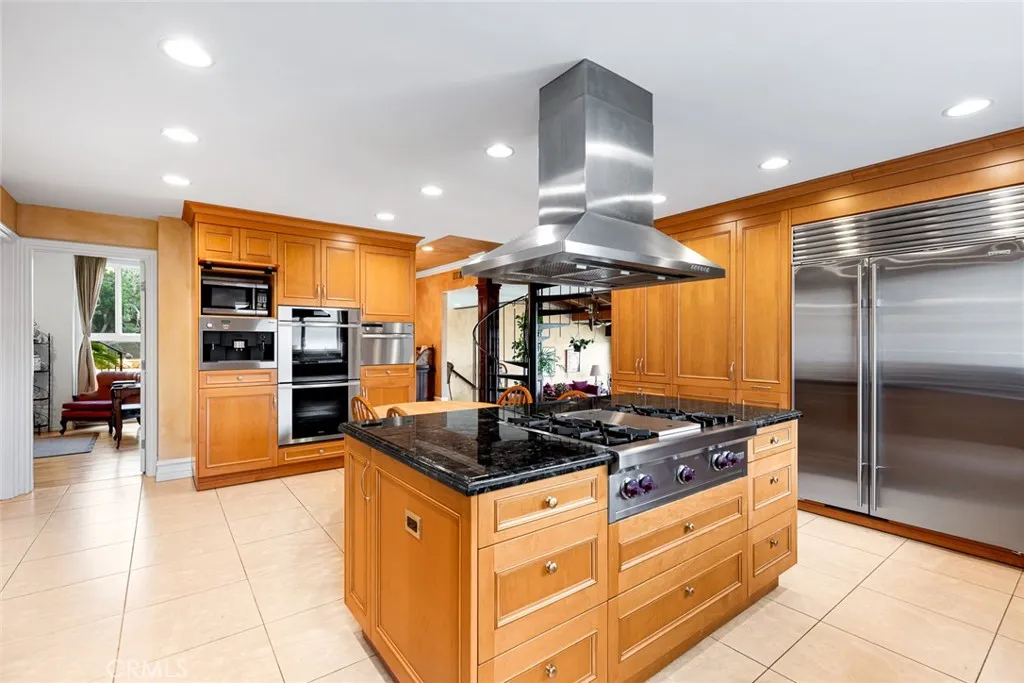 Jet liner views, mountain, valley and city lights. This six bedroom five bath pool home is located in close proximity to gate. Sage lane is one of the most beautiful streets in Guard Gated Bell canyon, located on a private and quiet cul-de-sac. Front of property features a large frontage with mature trees and landscape. Front yard is private and features large water fountain and slate flooring. Double door entry, living room with floor to ceiling glass jaw dropping views, stone fireplace. Kitchen with upgraded cabinets and countertops, island with WOLF range and hood ,built in kitchen table, SUB-ZERO refrigerator, Miele warming drawer, double oven, coffee/espresso machine, pull out spice rack, dumbwaiter, double dishwasher and door access to pool and BBQ area. Huge laundry room /walk in pantry with cabinets and storage. Family room/game room with glass walls, custom built ins ,most amazing views, fire place double glass doors leading to outdoor pool /entertaining space. Separate formal dining room .Built in bar with sink, storage, SUB-ZERO wine refrigerator. Main level guest bath with outdoor pool access Main level on suite with remodeled bathroom. Primary bedroom features walls of glass with amazing views, private deck ,walk in closet with organizers, original primary bathroom is huge ,needs updating but amazing potential .Four additional bedrooms with two baths. High ceilings, private decks, built in closets, built in bay window with seating area, amazing views from all room. This near 4000 sq foot home with over an acre of land is the best value in prestigious guard gate
