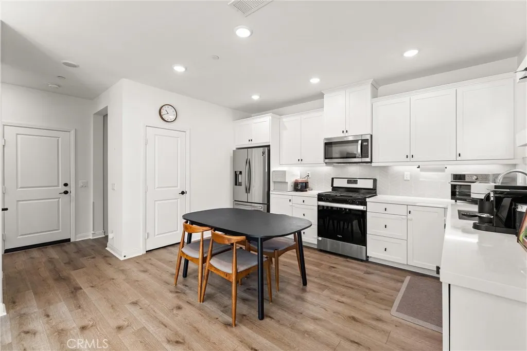 This is probably the best location at the Groves in this layout. This is a two level townhome with 1br/1.5ba situated in a corner that brings in a lot of natural light. The first level with beautiful laminate flooring features an open kitchen with stylish white shaker cabinets, quartz countertops, tile backsplash and stainless steel appliances. In addition there is a spacious living room and a convenient powder room for your guests. The direct access garage has a ready connection for level 2 charging for your electric vehicle. The second floor has a spacious laundry room with built in shelves, a bedroom with sliding door closet and a bathroom with enclosed shower. The Grove is a newer community that has all the amenities that you may need. It has 2 swimming pools, playgrounds, a dog park, fitness/gym room, lounge, recreation room and a putting green. A shopping center is within walking distance and it is anchored by a Stater Brothers Market and there are popular eateries like In-N-Out burger, Chipotle, CAVA, Raising Cane Chicken, Philz coffee, Rodeo 72 market and more. Freeway is just two miles away. Do not miss this great location!
