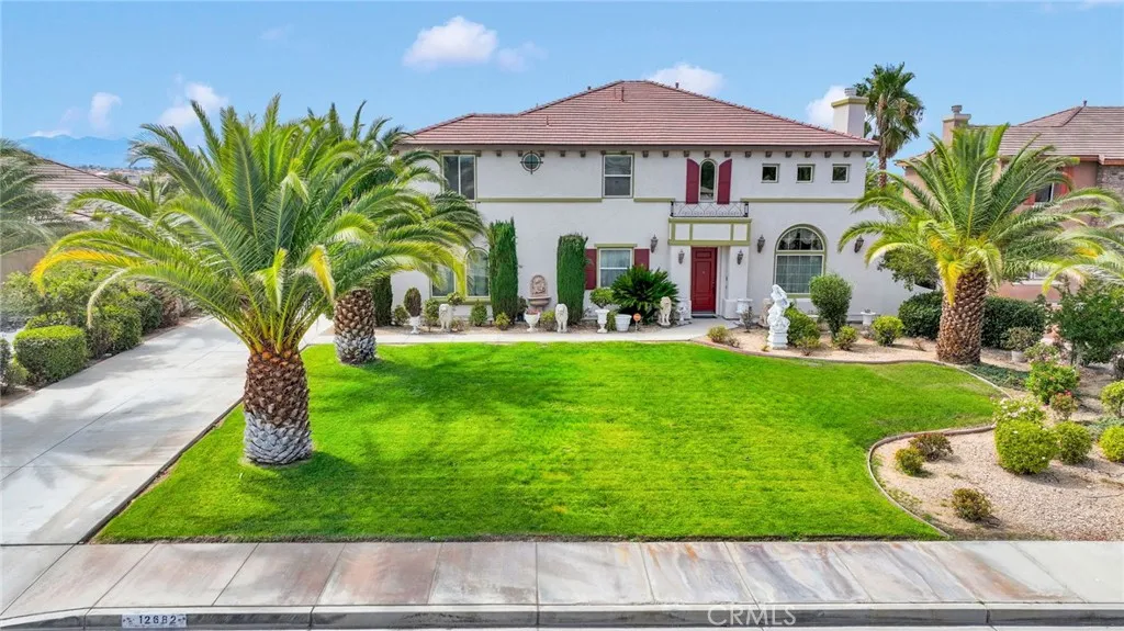 Welcome to a true masterpiece in Apple Valley! This stunning 7-bedroom, 6 -bathroom luxury estate perfectly blends timeless elegance with breathtaking views. From the moment you step inside, youll be captivated by the soaring ceilings, exquisite finishes, and the meticulous attention to detail in every corner. Plus an office and a mini suite bedroom downstairs. The grand living room showcases crystal chandeliers that sparkle with natural light pouring through the tall windows, while custom drapery, ornate gold accents an atmosphere of regal sophistication. Every space in this home reflects elegancefrom the hand-carved furniture and artful wall dcor. The home features a wired sound system throughout, perfect for entertaining or setting the mood in every room, along with a built-in intercom for convenience and security. The open layout flows seamlessly into multiple living and dining area, making it ideal for both intimate family gatherings and grand-scale entertaining. Additional bedrooms provide comfort and privacy for family or guests. Step outside to discover your own private paradiseperfect for enjoying High Desert sunsets and the surrounding beauty. This estate is more than just a home; its a statement of luxury and elegance in the heart of Apple Valley.
