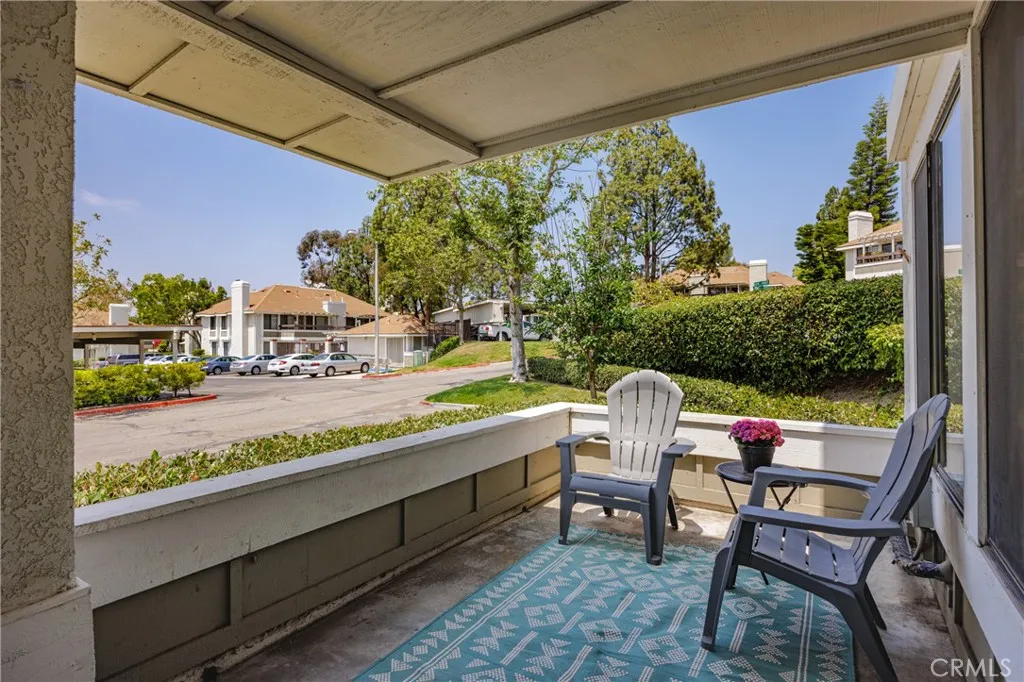 Corner Unit Single-Level Condo that has been beautifully maintained a perfect blend of comfort, convenience, and California charm! Step inside and experience an inviting open layout highlighted by stylish laminate flooring and an abundance of natural light that flows throughout the home. The spacious living room offers the ideal space to relax or entertain, featuring a charming brick-surround fireplace complete with a classic mantle perfect for cozy evenings or displaying your favorite dcor. Adjacent to the living area, the dining space is designed for gatherings both large and small. It includes a versatile bar-top seating area, ideal for casual meals or mingling with guests while cooking. The kitchen is both functional and welcoming, offering durable tile countertops, ample cabinet storage, and a layout that encourages creativity for any home chef. Continue down the hallway to find a dedicated laundry area with extra storage a rare and convenient feature in condo living. The generously sized primary bedroom offers a peaceful retreat, complemented by a beautifully remodeled bathroom that exudes modern elegance. Enjoy the best of outdoor living with a spacious front patio perfect for basking in the Southern California sunshine, hosting summer barbecues, or simply unwinding at the end of the day. Additional features include central air conditioning, recessed lighting in the kitchen, a designated carport space, and in-unit laundry for added ease. As part of a well-maintained community, residents also enjoy access to resort-style amenities including a sparkling swimming po