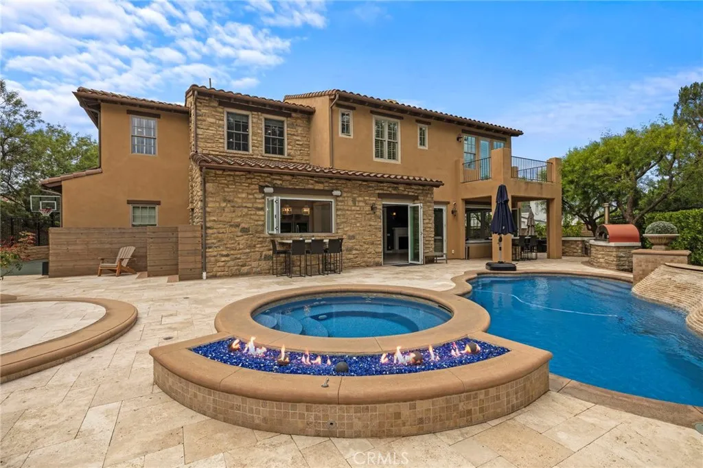 Gorgeous former model home in Covenant Hills with nearly 15,000 sqft lot, casita & resort-style yard.Welcome to this exquisite 5-bedroom, 5.5 bathroom K. Hovnanian Capistrano masterpiece set within the guard-gated community of Covenant Hills. Situated on a rare 14,976 sqft lot, this nearly 5000 sqft former model home offers several recentupdates, privacy, luxury and unmatched indoor-outdoor living. Designed for both entertaining and everyday comfort, this beautifully upgraded home features a versatile loft, 4 balconies and a 3-car garage with built-in cabinetry and water filtration. The spacious open-concept floor plan is flooded with natural light and adorned with custom features: hardwood and tile flooring, bi-fold door and windows, plantation shutters, electric window treatments, designer lighting, ceiling fans, wine refrigerator, and a custom fireplace. The chefs kitchen is a showstopper with luxury stainless steel appliances, Wolf gas range, quartz countertops, glass-front refrigerator/freezer, an elegant custom backsplash and custom bi-fold windows to open the home to the yard. Step outside to your private resort-style backyard featuring a sparkling pool & spa, outdoor shower, fire features, built-in BBQ with Teppan grill, basketball court, dog run, and newly landscaped grounds with custom built-in tables. The spacious primary suite includes a private balcony, elevated ceilings, custom bathroom, and built-in walk-in closets. Additional upstairs bedrooms are generously sized, along with a versatile loft. A tranquil outdoor courtyard with fireplace connects the main ho