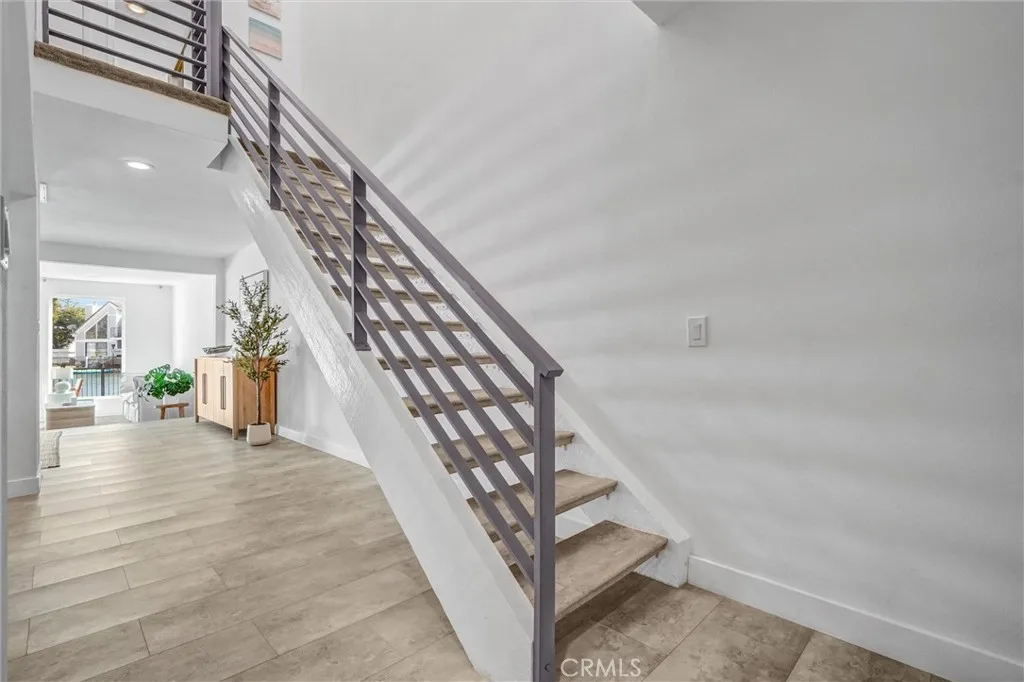 Wake up to peaceful lagoon views every morning in this beautifully reimagined Seagate Davenport model, perfectly positioned with coveted southern exposure for all-day sun and breathtaking sunsets. The main level was completely reconfigured for open-concept living. The sleek, updated kitchen features newer appliances, custom lighting, and flows seamlessly to the dining and living areasanchored by a striking white-stone fireplace with a tiled hearth. Expansive patio doors lead to a tiled waterfront patio, perfect for al fresco dining, lounging, or entertaining against the sparkling backdrop of the lagoon, & if it gets hot, enjoy the cool breeze of the central air throughout the home. Upstairs, the spacious primary suite is a true retreat with soaring ceilings, a private balcony, and a wall of windows framing uninterrupted water views. The remodeled primary bath is both stylish and serene. The second upstairs bedroom is flexibleideal as a guest room, office, or even dividable for kidsand a bonus closet adds extra storage or a cozy play space. The downstairs bedroom and full bath provide convenience for guests, while the smartly hidden laundry area sits behind a chic sliding barn door. This is a true smart home: adjust lighting, blinds, and climate control with Alexa. Solar-powered blinds automatically track the sun, creating effortless comfort and efficiency. Enjoy resort-style living in Huntington Harbours sought-after Seagate community, featuring two pools, a spa, two clubhouses, and tennis and pickleball courts. Boat docks are available for rent, and youre minutes from the