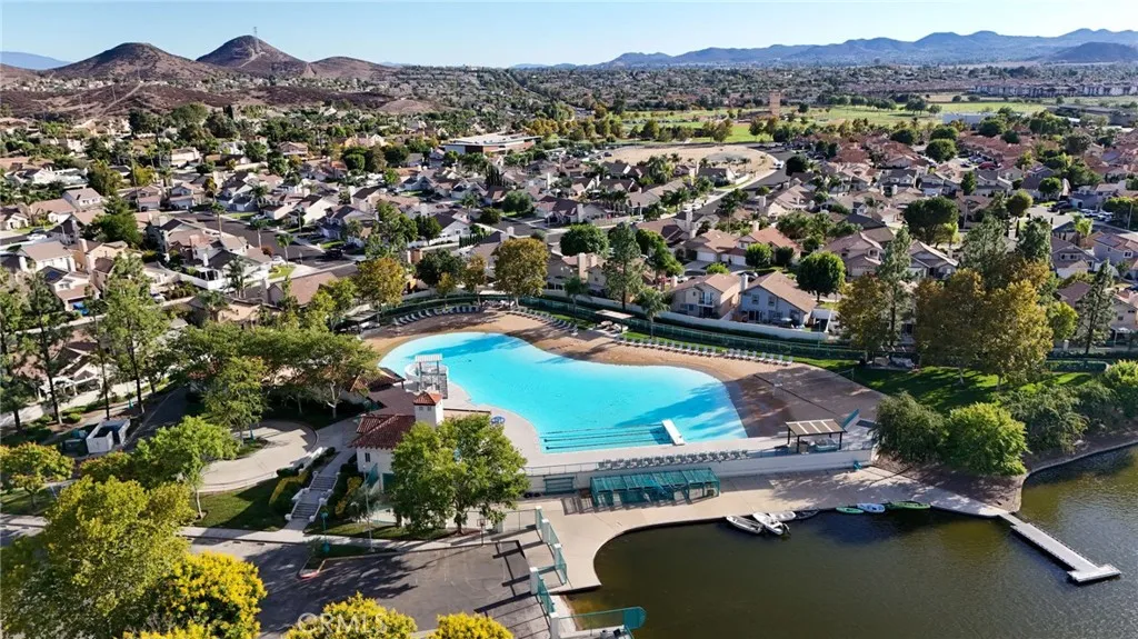 Welcome to 30681 Pier Point Cir, a beautifully upgraded home in the heart of the Menifee Lake Association. Offering 5 bedrooms, 3 bathrooms, and approximately 2650 sqft of living space on a 13,068 sq. ft. lot, this home is tucked away in a private cul-de-sac and features a rare three-car garage with RV parkingan amenity not commonly allowed in the association. A spacious front yard adds to the curb appeal, and inside youll find soaring ceilings, abundant natural light, and tasteful upgrades throughout. The main level includes elegant tile flooring, a living and dining room combination, and an updated kitchen with white cabinetry, quartz counters, stainless steel appliances, recessed lighting, and a island that flows seamlessly into the family room with its cozy fireplace. A full bedroom and bathroom downstairs provide flexibility for guests or multigenerational living. Upstairs, there are four additional bedrooms with mirrored closets and ceiling fans, a community bathroom with double sinks and a private shower/toilet room, and a spacious master suite with its own deck to enjoy stunning sunset views. The master bathroom has been stylishly updated with modern cabinetry, framed mirrors, light fixtures, a decorative shower and tub, and generous closet space. An indoor laundry room with built-in storage, upgraded fixtures throughout, and a tasteful modern color scheme complete the homes interior. Best of allthere is no Mello-Roos tax. The backyard offers a large concrete patio and a lattice-covered sitting area, providing a blank canvas for your creativity. Location is truly un