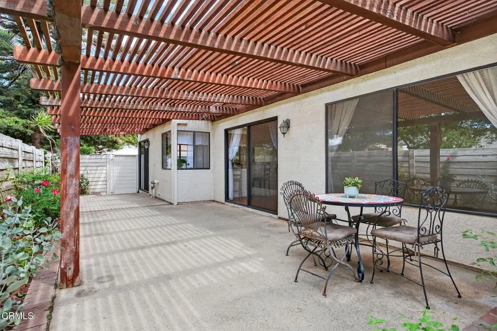 Welcome to Las Casitas, one of Camarillo's most desirable gated communities! This beautiful single-story offers the community's largest floor plan. 1,722 Sqft home with 2 bedrooms, 2 bathrooms, a den with wet bar (that can easily become a 3rd bedroom or an office), a bright atrium, and a pergola-style covered side patio for extra outdoor living.A bright kitchen features tile countertops, a corner view window with mountain and patio views, new plank flooring, stainless steel appliances, a new fridge, pull-out spice rack, enclosed laundry with washer/dryer, and a sliding door to the patio. Just off the kitchen, the dining area showcases vaulted ceilings that carry into the living room, where a cozy fireplace and a slider to the atrium create a warm, open space filled with natural light.The guest bedroom includes new carpet and a spacious closet, paired with a full bath featuring a tub/shower combo. In the primary suite, enjoy new carpet, patio access, a walk-in closet, soaking tub, separate shower, and double-sink vanity. The den provides flexibility as an office or entertaining space with its own slider to the atrium.Freshly painted throughout, with central AC, lush landscaping, and a sprinkler system, this home is move-in ready. The expansive covered patio which is accessible from the kitchen, dining, and primary offers plenty of room for entertaining or relaxing, with two gates for direct access to community amenities and the central park. A 2-car garage adds convenience with loft storage, power, and a pull-down ladder.Las Casitas is a gated community of 57 Mediterranean-s