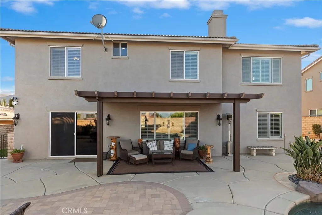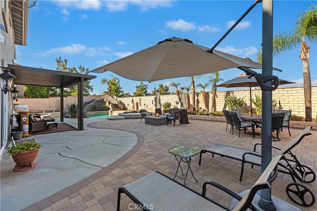 Welcome to 1641 Via Sevilla in Corona, CA an exquisite executive residence nestled in the green hills of South Corona. Located just minutes from top-rated schools, shopping, dining, and convenient freeway access. Offering 5 bedrooms, 3 bathrooms, and approximately 3,486 sq. ft. of living space on a generous 10,454 sq. ft. lot, this home blends timeless elegance with thoughtful upgrades. From the curb, the home impresses with its easy-to-maintain landscaping featuring low-water plants and turf, an extra-large driveway, and a 3-car garage with RV parking potential. Beautiful double front doors with custom glass inlays provide a warm welcome into a bright and open floor plan. Inside, youll find refined details including wainscoting, wood shutters throughout, and an abundance of natural light. The spacious living and dining rooms flow seamlessly into the family room, enhanced with a custom surround-sound system for an immersive experience. The kitchen is truly the heart of the home, showcasing a large center island, granite countertops, a walk-in pantry, and newer appliances (dishwasher just one year old, microwave two years old). A central vacuum system adds modern convenience, while the upstairs offers generously sized bedrooms along with a large bonus roomperfect as a game room, home office, or media space. The backyard retreat is designed for both relaxation and entertaining. Enjoy the shade of the Alumawood patio cover, gather around the firepit, or host barbecues at the built-in outdoor kitchen. The sparkling rock pool and spa have been refreshed with cleaned tile and re