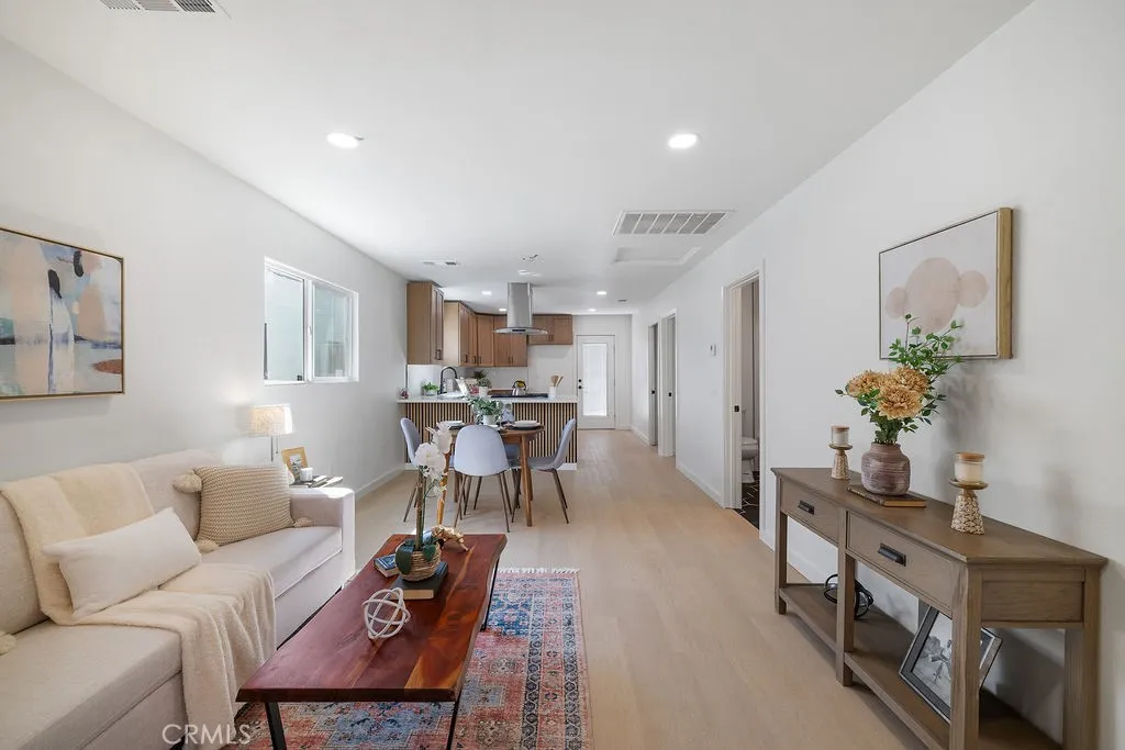 Welcome to this beautifully reimagined Spanish Revival home in the heart of Hyde Park, blending timeless character with modern upgrades. As you drive up to the property, you'll notice the inviting exterior featuring a new driveway that will lead you into your front porch, adorned with Saltillo hex tiles and lush artificial turf setting the stage for the serene retreat that lies beyond. Inside, natural light fills the open living and dining areas through new dual-glazed low-e windows. The home is anchored by new Laurel Reserve Malta luxury vinyl planks and accented with stylish updated fixtures throughout. The custom kitchen boasts timeless white quartz countertops, statement tile backsplash, soft-close cabinetry, and stainless steel appliances, including a gas range and dishwasher. A large peninsula adds both function and seating, making it ideal for entertaining. Washer and dryer hookups are conveniently placed for everyday ease and hidden by a pocket door. The spacious primary suite features an en suite bathroom with a walk-in shower and dual vanity. Both bathrooms showcase sophisticated tile-work, offering a modern yet timeless feel. Major system updates provide comfort and peace of mind, including a new central HVAC system with ducting, updated plumbing, new electrical panel and wiring, and security gates leading into your backyard which is a blank canvas awaiting your imagination. The detached garage provides additional potential as a studio, gym, or like many of the neighbors is primed for a future ADU conversion. Located just blocks from Crenshaw Blvd, this home is p