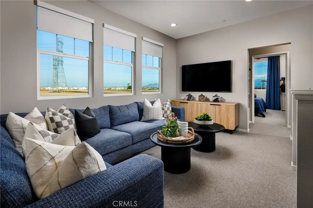 Highly desirable open concept Dwell at New Haven PLAN 3. 1 or 2 last PLAN 3's at New Haven- Detached Home with LOWER RATE AND SOLAR INCLUDED! This upgraded 4-bedroom single family detached home offers a first-floor bedroom & full bathroom with walk in shower. Must see kitchen with oversized island! Corner home with lots of windows and private yard to enjoy. Kitchen features modern cabinets, quartz kitchen countertops, designer backsplash and Whirlpool gas appliance package. Spacious great room includes pre-wiring for surround sound and to easily mount TV on wall. Private yard off great room is the perfect space for entertaining, family & pets. Upstairs, your loft/bonus room greets you at the top of the stairs. Bonus room is the perfect space for a home office, homework station or second TV room. 3 bedrooms are upstairs, with 2 full baths and your laundry room. Upgraded flooring includes wood laminate flooring throughout your first floor; with upgraded carpet in all bedrooms and upgraded tile in your bathrooms. Purchase brand new to enjoy builder warranty, smart home technology and energy efficient construction. Centrally located to shopping, new schools, all of Southern Californias freeways and Ontario International Airport. Come see why New Haven has been recognized as top master planned community in the US! New Haven residents enjoy 2 indoor clubhouses, open air clubhouses, 6 refreshing swimming pools, 3 jacuzzis, kids splash zone, pickleball, basketball, BBQ pavilions, firepits, playgrounds with zipline & more! On-site lifestyle director. Walkable community steps from Ne