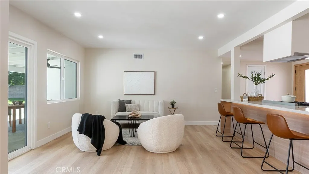 Welcome to this modern luxury retreat tucked away on a peaceful cul-de-sac in West Hills. With 4 bedrooms, 2 bathrooms, and 2,237 sq. ft. of designer living space on a 0.26-acre lot, this residence combines sophistication, comfort, and resort-style living in one remarkable property. Inside, soaring ceilings and an open-concept floor plan set the tone for elegant gatherings and relaxed family living. The spacious dining room showcases a stunning chandelier and custom wood-paneled ceiling detail, flowing seamlessly into the expansive living room and custom bar. The chefs kitchen is a true showpiece, featuring a 6-burner island cooktop with range hood, built-in microwave, refrigerator, dishwasher, and abundant white oak cabinetry. The primary suite offers a spa-like sanctuary with a walk-in shower, soaking tub, and expansive walk-in closet, creating the perfect escape at the end of the day. Outdoors, the property transforms into an entertainers paradise with a sparkling pool surrounded by swaying palm trees, a mini golf area, spacious turf yard, and a covered patio with dual fans for year-round enjoyment. Located in a private, family-friendly neighborhood just minutes from Topanga Mall, The Village, scenic parks, and top-rated schools, this home offers the ultimate blend of modern elegance and California lifestyle.