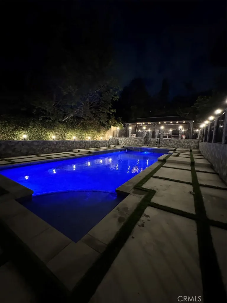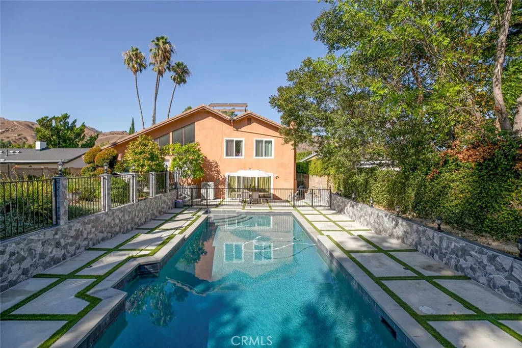 Welcome to this exquisitely remodeled home, featuring paid-off solar energy and breathtaking mountain views, nestled in the heart of Porter Ranch. No detail has been overlooked in this stunning residence. As you step inside, youll be greeted by elegant new tile flooring throughout, complemented by stylish vinyl flooring in all bedrooms. The guest restroom has been tastefully remodeled with all-new tile, while the family room boasts a modern electric fireplace surrounded by Italian tile. The popcorn ceilings have been removed to create an airy, contemporary feel, enhanced by upgraded recessed lighting in the kitchen, three bedrooms, and the family room. The home also includes an electric car charger for your convenience. A comprehensive water filtration system ensures fresh water throughout the house, and the driveway has been expanded with a fresh layout of artificial grass and a new retaining wall enhancing the curb appeal. The backyard is a true oasis, featuring a freshly renovated pool with a mini pebble finish (10 ft deep) and new plumbing with three return lines. A cozy Baja shelf has been added for the kids, along with brand-new equipment including a saltwater system, heater, pumps, and a water feature. Enjoy the convenience of wireless pool controls, two color-changing pool lights, a new skimmer, and an auto-fill feature. Surrounding the pool, youll find newly installed cement slabs and elegant tile-work, as well as a barrier wall and new gates for added safety. The patio area features brand-new pavers and lighting, creating an inviting space for relaxation and enter