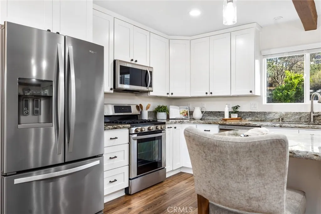Welcome to this exquisite single-story estate, built in 2018 and perfectly situated on just over an acre with expansive views and abundant usable space. Spanning 2,052 square feet, this residence offers 3 spacious bedrooms, 2.5 bathrooms, and a thoughtful blend of timeless craftsmanship and todays most sought-after design elements. From the moment you arrive, the homes Spanish-inspired architecture and expansive covered front porch set the tone for relaxed luxury living. Positioned to capture peaceful views and breathtaking sunsets, the property offers both privacy and convenience, with shopping, dining, and commuter routes just minutes away. The wide front porch is ideal for morning coffee or evening gatherings, surrounded by lush, drought-tolerant landscaping that enhances its natural beauty. Step inside and you are instantly greeted with the warm, welcoming feeling of home. The open-concept layout is designed for the way people love to live todayseamlessly blending entertaining and everyday comfort. At the heart of the home, the gourmet kitchen showcases striking granite countertops, a large center island with bar seating, custom white shaker cabinetry with designer hardware, and exposed wood ceiling beams that add rustic charm. Stainless steel appliances, abundant storage, and an effortless flow into the dining and living areas make this space as functional as it is beautiful. The living room invites gathering and connection, highlighted by a cozy fireplace with a brick hearth and wood mantle. The primary suite serves as a private retreat, featuring a spa-inspired bathr