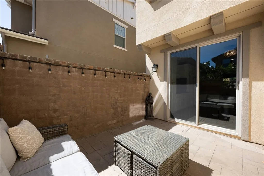 Welcome to this exceptional 3-bedroom, 2.5-bathroom single-family home offering 1,921 sq. ft. of stylish living in the highly sought-after Citron neighborhood of Rancho Mission Viejo. This unique residence boasts a private front entrance with serene hillside views right from your doorstep. Inside, an open and airy layout is highlighted by soaring two-story ceilings, gorgeous engineered hardwood floors, plantation shutters, and custom window shades. At the heart of the home, the oversized kitchen island with quartz countertops provides the perfect gathering space for cooking, dining, and entertaining. The kitchen is further enhanced with a marble backsplash, Whirlpool stainless steel appliances, crisp white shaker cabinetry with soft-close drawers, and abundant pantry storage. Counter seating offers a spot for casual meals, while the adjacent dining area is ideal for larger gatherings. Upstairs, the primary suite serves as a relaxing retreat with a spa-inspired en-suite featuring dual vanities, a soaking tub, a separate walk-in shower, and a generous walk-in closet. Two secondary bedrooms connected by a pass through bathroom, plus a convenient laundry room with sink, overhead cabinetry, and folding counter, complete the second floor. Perfect for indoor-outdoor living, the home also features two upgraded backyard patios with stamped concreteideal for entertaining, relaxing, barbecuing, or playtime with pets. Residents of Esencia enjoy an unmatched lifestyle with access to resort-style amenities, including multiple clubhouses, 8 pools, 3 state-of-the-art gyms, sports fields, a