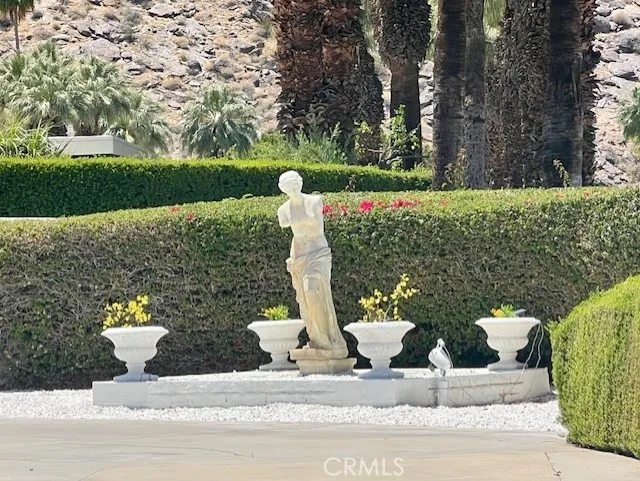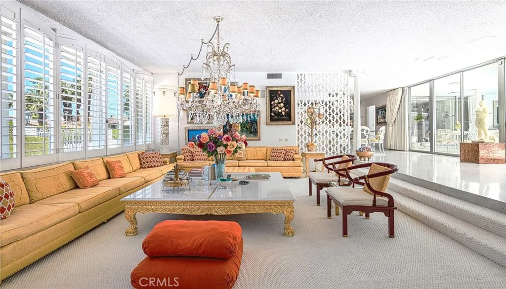 Step into a time capsule of mid-century modern perfection in the heart of Palm Springs! Designed by renowned architect John Outcalt, this 1965 gem on a 14,000 s.f. lot blends retro sophistication with seamless indoor-outdoor living. Just three blocks from downtown in the coveted Historic Tennis Club district, it offers stunning views of the San Jacinto Mountains. Beyond the double-door entry, an extra-large sunken living room welcomes you with a dramatic floor-to-ceiling marble fireplace, higher ceilings, and walls of glass. Original terrazzo flooring leads to the dining area, perfectly positioned next to a fabulous vintage wet bar. The adjacent kitchen features a walk-in pantry and a separate laundry area. Two oversized primary suites offer vintage luxury with terrazzo-clad baths, sunken tubs, and private patios. A third bedroomideal as a media room or guest retreatincludes twin beds, a desk area, and its own terrazzo shower/tub combo. Sliding glass doors in every bedroom open to the sun-drenched pool deck, where a sparkling pool, lounge space, and breathtaking mountain views create a dreamy retreat. Private patios, an attached two-car garage, 3 cabanas and an unbeatable location near top restaurants, the Agua Caliente spa, Palm Springs Art Museum, and the famous Thursday night street fair complete this timeless escape. Select furnishings are available for purchase to keep the vintage vibes alive. Furnishings available for purchase.