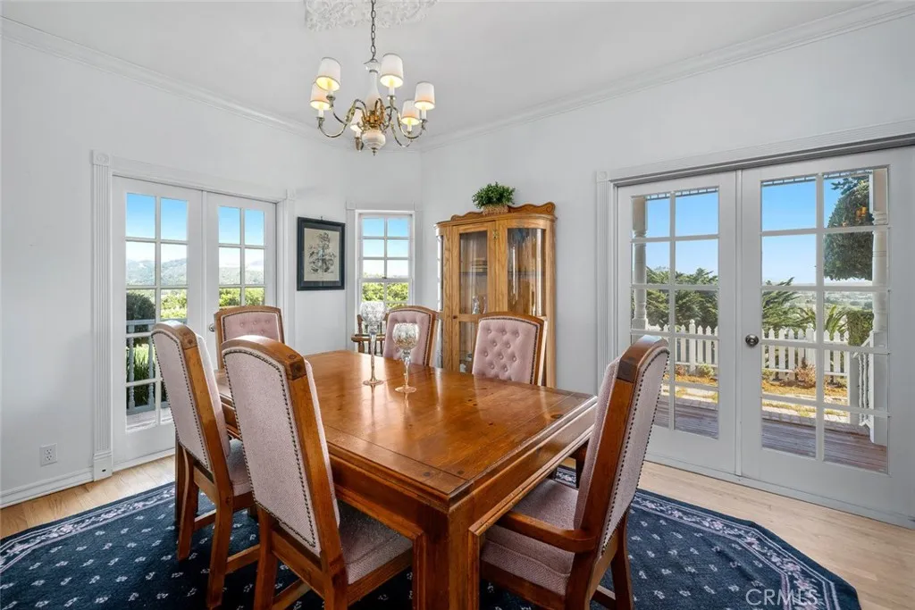 Perched above the historic Village of Arroyo Grande, this timeless Victorian farmhouse offers sweeping views of the city, surrounding mountains, and the Pacific Oceanalong with a DETACHED STUDIO and a spacious bonus room above the garage, ideal for a shop or creative work. Inspired by San Franciscos iconic Painted Ladies, the home was thoughtfully crafted to be historically accurate and built to last a century. Set on nearly half an acre, the home greets you with a wraparound veranda and an elegant octagonal cupolasignature details from the Victorian era. Inside, a soaring two-story foyer showcases a grand staircase, antique chandeliers, and Casabella plaster rosettes. French doors open to an octagonal living room featuring coffered ceilings, custom built-ins, and a fireplace with wood mantel and sconce lighting. The living room connects to the formal dining room via a double-sided fireplace. From here, two sets of French doors lead to the veranda and backyardperfect for seamless indoor-outdoor entertaining. The kitchen features a generous L-shaped island, Sub-Zero refrigerator, and double ovens, and opens to a warm family room with coffered ceilings and fireplace. Just off the kitchen, a charming cottage sunroom overlooks the Village and leads to the backyard, complete with gazebo, putting green, and a white picket fence that frames the entertaining space. A den on the main level adds flexibility for guests, a home office, or media room. Upstairs, the octagonal primary suite offers dramatic views, coffered ceilings, a two-way fireplace, and a spa-like ensuite bath. Two add