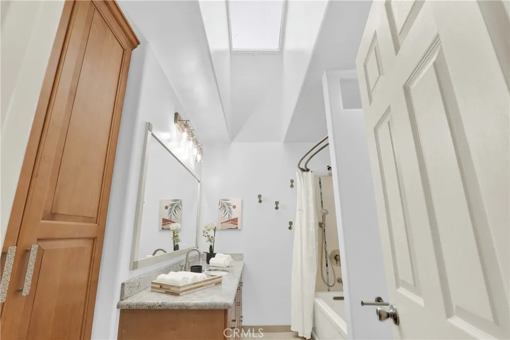 Spectacular single-level updated home of over 3,000 square feet nestled on a cul-de-sac in the highly desirable area of Eastside Costa Mesa. Located near Newport Back Bay, this jewel with a lot size of nearly 8,300 square feet exudes the beach vibe with sophisticated coastal charm. As you enter the foyer, meander into the enormous living room with vaulted high ceilings, skylights for optimum light, inviting fireplace, adjacent dining space, and an attractive open floor plan which leads you into the stunning remodeled Island Kitchen with new custom Asheville Cotton white oak cabinets, new stainless steel appliances, new luxury plank flooring, new recessed lighting, dazzling large island bar with Whiskey Royale white oak cabinets, built-in wine cooler, food pantry, new premium sink and faucet, and gorgeous brass cabinet door handles with brown leather inlays. This impressive home has new luxury plank flooring and baseboards throughout, new interior paint throughout, new exterior paint throughout, new lighting, owned solar panels, and much more. Adjacent to the living room, is a room with many options including a family room, den, or office with direct access to the backyard. As you transition to the 3 bedrooms, you will exit stage left to the spacious primary suite with large walk-in closet, high ceilings, luxurious bathroom with new travertine tile, new quartz countertops, new faucets and lighting, new seamless glass shower, and a relaxing soaking tub. As you stroll over to the middle bedroom you will be greeted with a staircase up to a loft ideal for a children's play area
