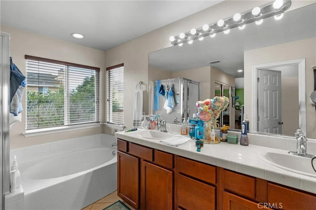 This beautifully maintained two-story Spanish-style home, built in 2001, and with 2,791 square feet, offers 5 spacious bedrooms and 4 full bathrooms, including a luxurious master suite with a fireplace, walk-in closets, master bath with dual sinks, and a garden tub with a separate shower, plus a second master bedroom with its own private bath. Designed for comfort and functionality, the home features a formal living room with fireplace, separate family room, dining room, indoor laundry, and an attached 3-car garage with exterior solar lights. The upgraded kitchen boasts custom cabinetry, Quartz countertops, a center island, filtered water-leased, and stainless steel appliances. Additional upgrades include tile flooring in the kitchen and dining area, laminate flooring throughout the rest of the home, custom interior paint, central heating and air conditioning, and a fully paid Tesla solar panel system to be transferred through escrow. The exterior is equally impressive with professionally landscaped front and back yards, a built-in BBQ pit, wet bar, and a variety of fruit trees, plants, and irrigation system with timerperfect for entertaining. Located in the desirable Northeast Santa Maria area, this home is close to schools, parks, and offers convenient freeway access.