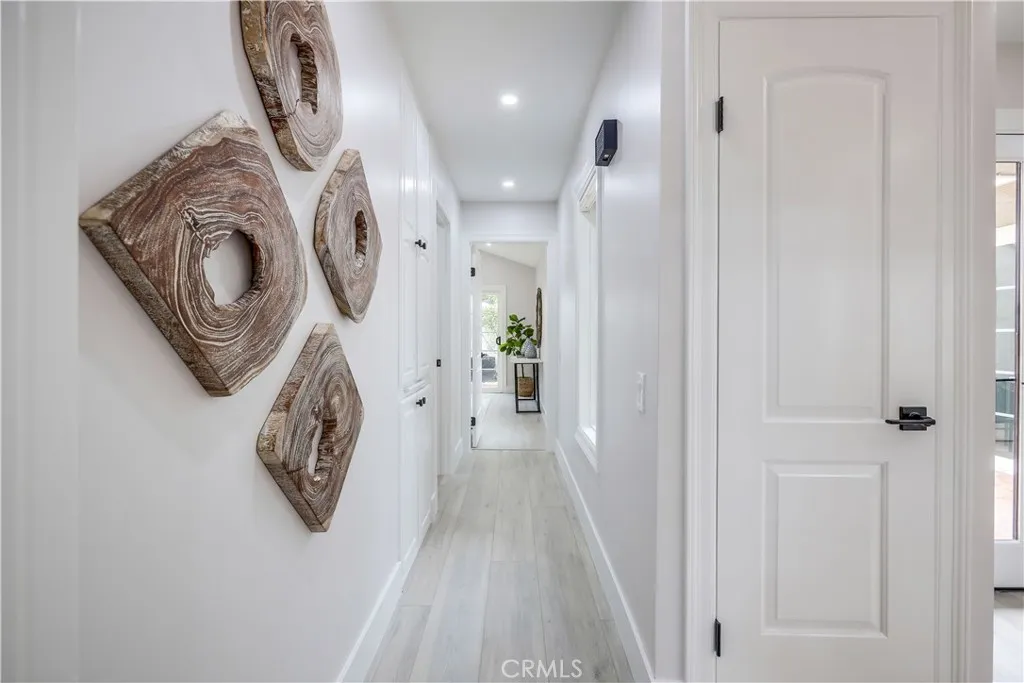 Newly remodeled and thoughtfully upgraded throughout, this prized single level beauty is a private oasis, ideally situated at the end of a quiet cul-de-sac, a Crown Jewel superbly located in the highly desirable 55+ Monarch Summit II community, offering the very best in coastal living! Pass through the private gated courtyard welcoming you to the home. Step inside and soak in the light filled freshly painted interior boasting new wide plank laminate floors, LED recessed lighting, vaulted ceilings, and an open concept, well-designed, floor plan with direct access to outdoor spaces from every room, creating a superb living environment. The living room is the perfect gathering space around the centerpiece fireplace and is open to the dining area with direct access to the backyard patio creating an ideal indoor-outdoor living space perfect for entertaining. The sparkling kitchen is a dream with new Quartz countertops, updated hardware and pulls, matching stainless steel appliances, new faucet, and a sunny breakfast nook which opens to the front courtyard, a soothing space for morning coffee with a loved one. The primary bedroom suite is a tranquil retreat with vaulted ceilings, direct access to the backyard patio, two closets with updated closet doors and built-in closet organizers, and a sleek updated primary bathroom with Quartz topped dual vanity, new faucets and hardware, updated lighting, and a gorgeous, newly remodeled step-in shower with frameless glass enclosure, custom tile surround, and new shower fixtures. The secondary bedroom also has high vaulted ceilings, sliders