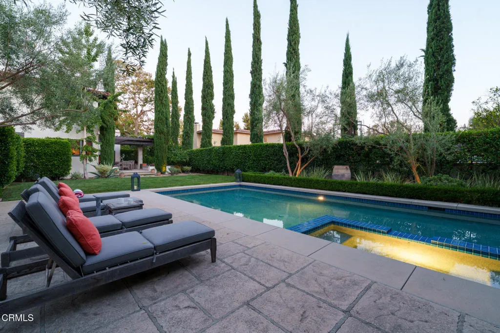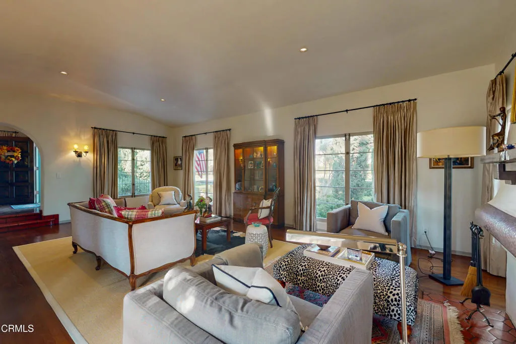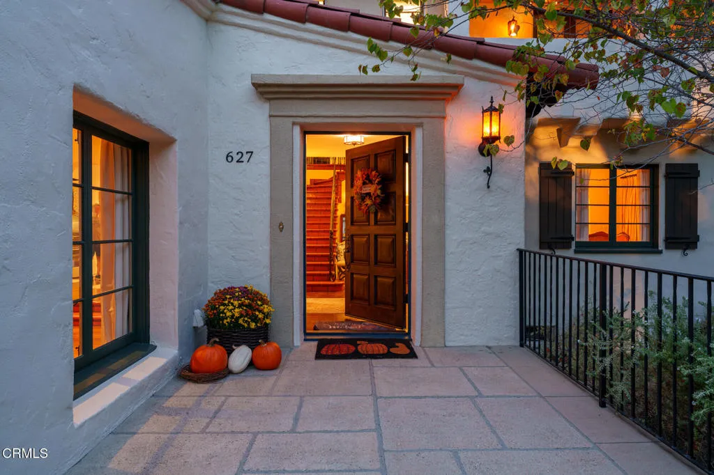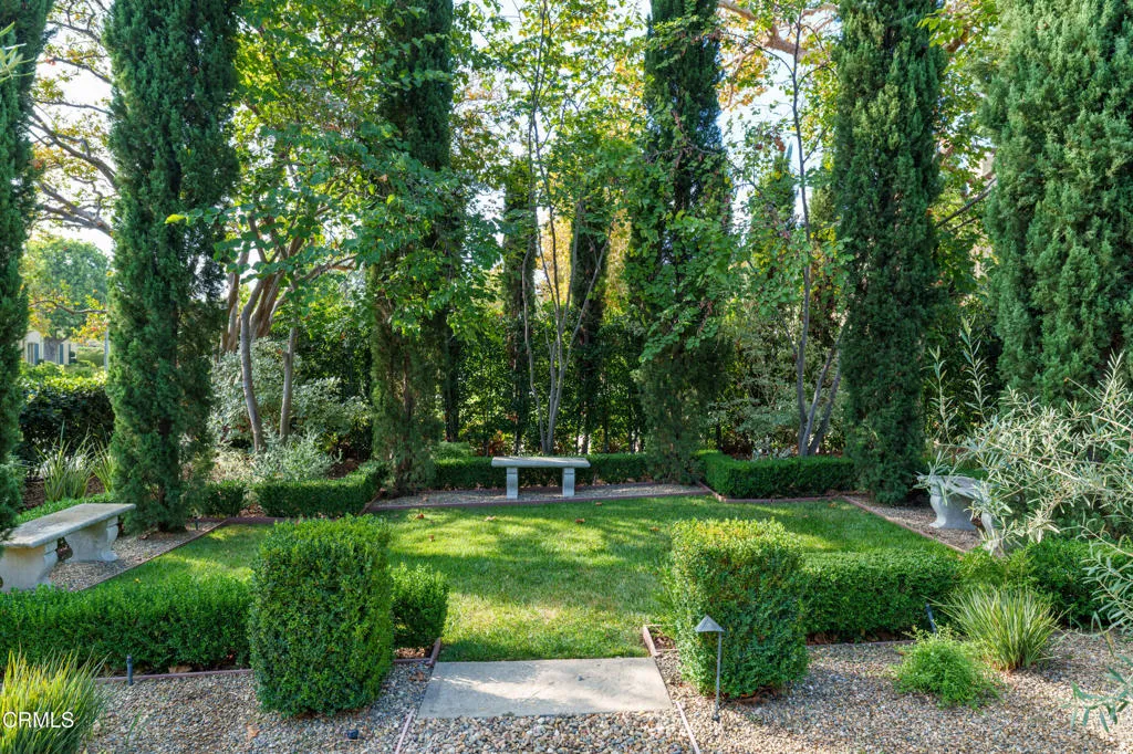 Step into the romance of old-world craftsmanship blended seamlessly with modern luxury in this 1930 Spanish Colonial Revival, completely renovated in 2014. Lush, drought-resistant landscaping by designer Gabriela Yariv invites you into this private sanctuary, featuring custom Dimmick style concrete paving and vintage Greek Pithari pottery accenting the gardens. This enchanting residence offers 4 spacious bedrooms and 3.5 designer bathrooms, & a family room open to entertaining rear yard.An entertainer's dream, the rear outdoor living space that could be accessed from the living room, family room and kitchen provides privacy as it is tucked behind mature cherry tree hedges, and includes a covered pergola adorned with pink Royal Trumpet vines, a custom-built firepit, Pebble Tec pool and spa, and multiple seating areas for gatherings day or night.Inside, rich period details meet modern upgrades. A handcrafted Magnesite staircase with antique wrought-iron railing makes a grand statement, leading into a vaulted-ceiling living room with copper-lined fireplace. The elegant flow continues through an antique wrought-iron gate to the family room, complete with a custom entertainment wall and built-in bookcases. The formal dining room features antique period light fixtures and built-in glass open shelves. One bedroom suite downstairs features custom mosaic shower, and is perfect for guests, home office or hobby room. The primary bedroom upstairs offers 2 spacious walk-in closets w/built-ins, custom upholstered wall with shelving & entertainment hook-ups & seating. Every bedroom boasts