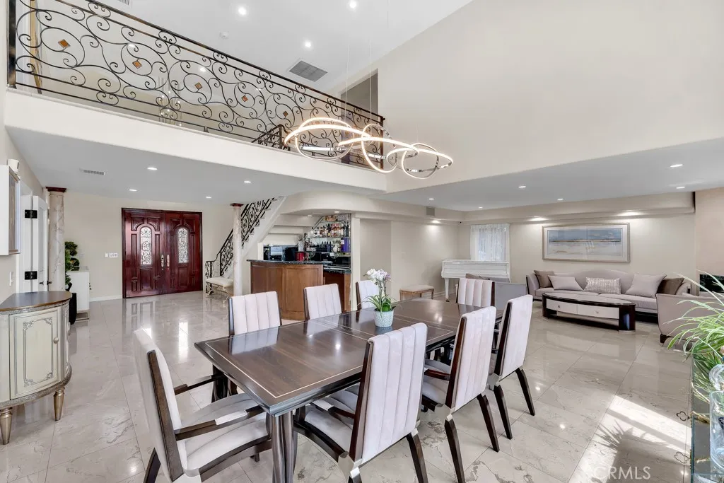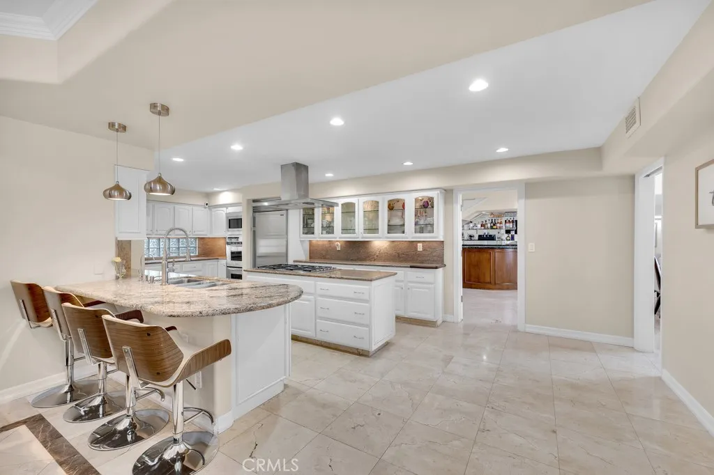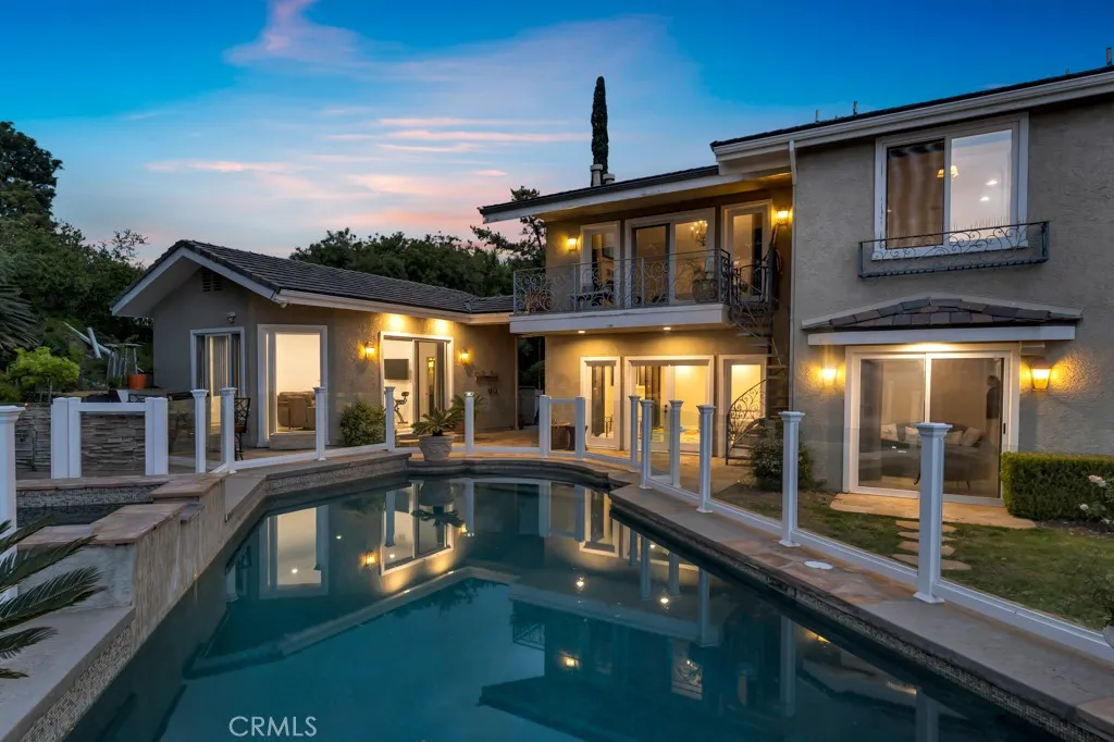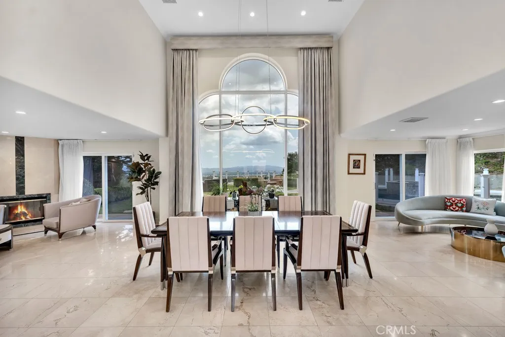This Castle on the hill is an Enchanting Estate offering comfortable and luxurious indoor/outdoor living with one of the best views in the valley! This home reigns over unparalleled City and Golf Course views. There is a grand Foyer w/Marble Flooring, Vaulted Ceilings, and breathtaking floor-to-ceiling views from a magnificent window. The dazzling open concept design highlights an elegant Dining Room with soaring ceilings, awash in natural light, and flanked on either side by sleek living rooms. Also in this large open space is an impressive wet bar designed to perfectly maximize the space under the elegantly designed staircase. The beautiful Chefs Kitchen features a breakfast bar, formal eating area, Granite Counter tops, New Mahogany Cabinets, a 6-Burner Cook Top, Double oven, and Built-in Microwave. The Family room has built-in cabinets, a fireplace, recessed lighting and a speaker system. The loft is perfect as an Office/Library. Two bedrooms are separated by a full bathroom complete with Jetted Tub and Steam Shower. The one-of-a-kind Primary Bedroom Retreat boasts a large Sitting Room, double sinks, dual showers separated by the Jetted tub, and a huge walk-in closet. This Bedroom has a Coffee Bar w/built-in fridge, a fireplace, and a custom terrace featuring a spiral staircase providing direct access to the backyard. This Entertainers Paradise features unobstructed views of the 16th and 17th holes of the Porter Valley Golf Course and a City sight line spanning from Burbank to Thousand Oaks. This serene setting features natural stone hardscape and lush landscaping which
