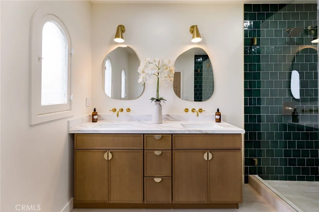 One of Kind Mediterranean gem nestled in the vibrant heart of Los Angeles. This charming three-bedroom, three-bath home invites you into a world of comfort and elegance. As you step through the front door, youre greeted by a sun-drenched living room, where large windows frame picturesque view of the front yard. The open-concept design seamlessly connects the living area to a modern kitchen, complete with sleek countertops, and a nice sized waterfall island. Kitchen is already equipped with all new appliances ready to use for all family gatherings. Each of the three bedrooms offers a private retreat, with the master suite boasting better than a 5 star Resort! Master bedroom features a true "his and hers" on everything... 2 vanities, 2 shower faucets/space and huge closet to accommodate both, WOW! The additional bathrooms are equally elegant, featuring contemporary fixtures and ample space, one of them being the Jr Master bedroom. Outside, a tranquil backyard awaits, perfect for entertaining or simply unwinding after a long day. French doors from your primary suite that lead you out to enjoy a freshly brewed cup coffee. This property is truly equipped with all of today's necessities such as Central AC/heating and PAID OFF Solar system!. All work done with LA city permits. This home is not just a place to live, but a backdrop for creating lasting memories.