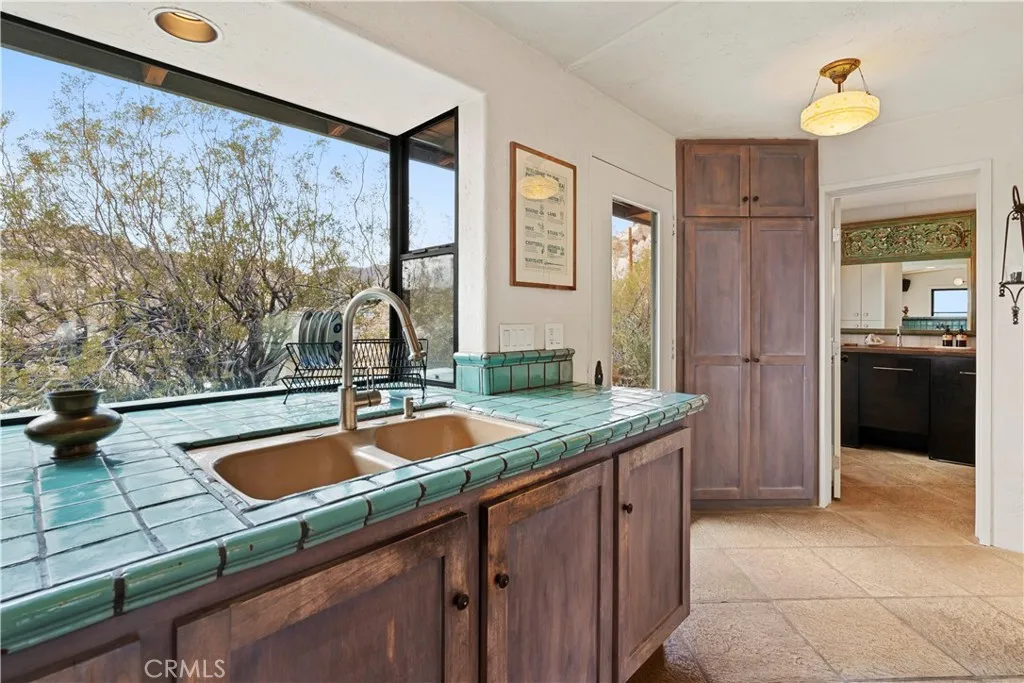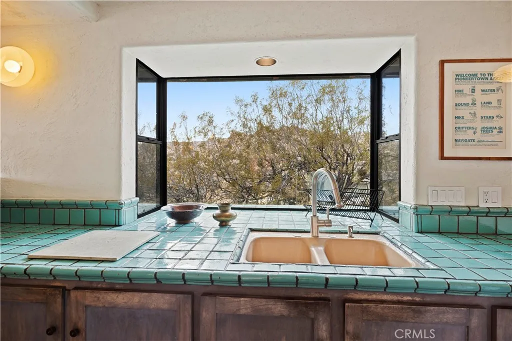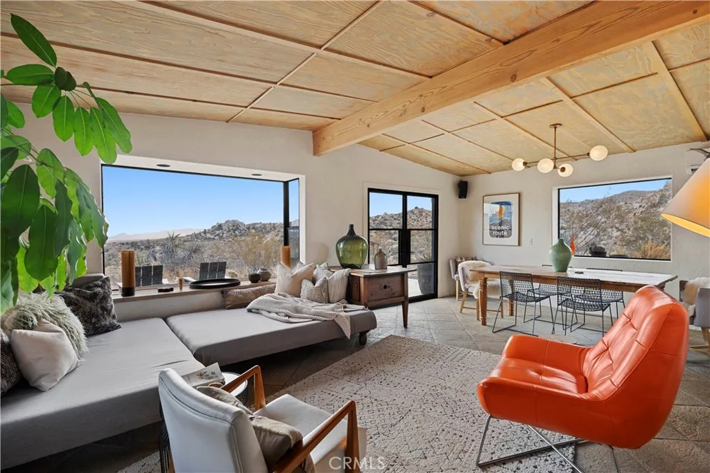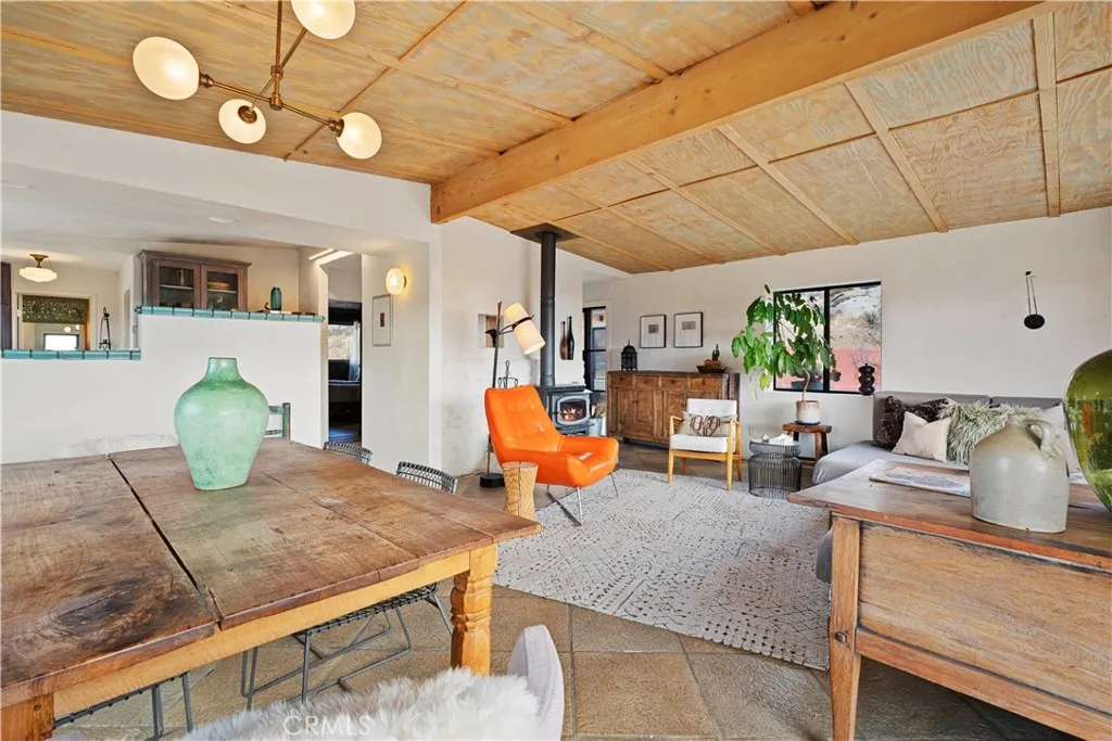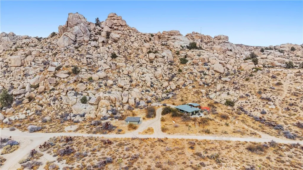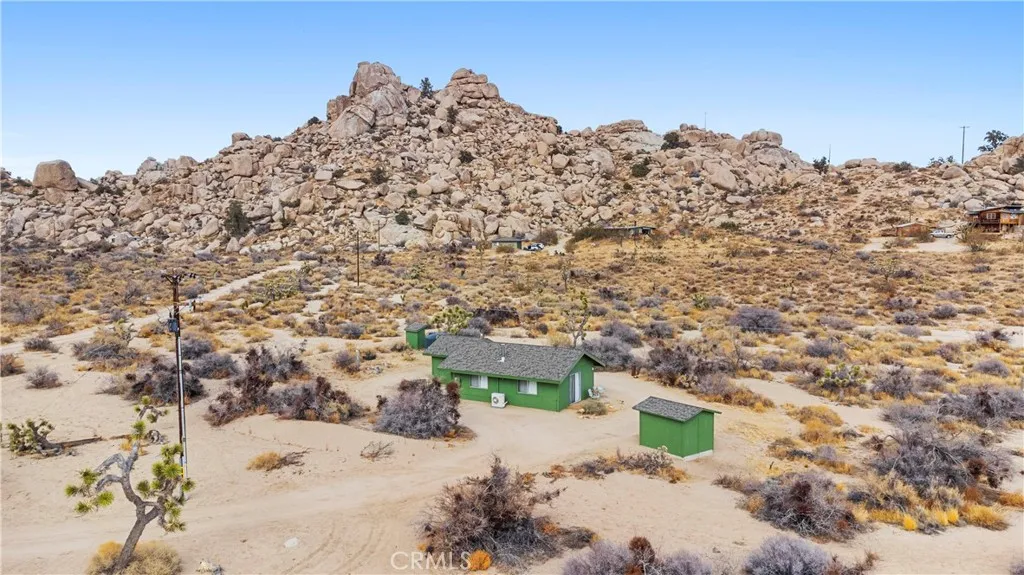 RARE DESERT OASIS: 5 ACRES OF SERENITY WITH TWO HOMES AND STUNNING VIEWS Discover the unique opportunity to own your very own desert oasis, nestled on 5 acres of breathtaking land in the heart of Pioneertowns most picturesque neighborhood, Gamma Gulch. Surrounded by majestic boulders, vibrant wildflowers, and iconic Joshua Trees, this is a truly rare property. Main home is 1 Bedroom / 1 Bath, just over 1,000 sq ft with stunning mountain and desert views from every angle. Enter this freshly painted home through its custom-made iron doors from Pinkys. It boasts a cooks kitchen featuring a professional Viking range, walk-in pantry, and high-end finishes. A wood-burning stove in the cozy living room allows for warmth and ambiance. The bathroom has been recently updated with modern fixtures. Savor its private garden oasis with mature landscaping and a separate entertaining patio. A studio building just outside the side door is currently used as a second bedroom. There is also a fully finished 2-car garage for convenient storage or workshop space. Second home, approximately 700 sq feet, is situated at the opposite end of the property for privacy and seclusion and has an open concept layout with full bath and kitchenette, exterior just repainted. Main house has private well, cabin has own 2400 gallon water tank with new digital pump. Both homes have been successful short-term rentals in pastbuyer to confirm current permitting and usage. With views stretching all the way to Joshua Tree National Park, the Santa Rosa Mountains above Palm Desert, and the snow-capped peaks of San Jacin