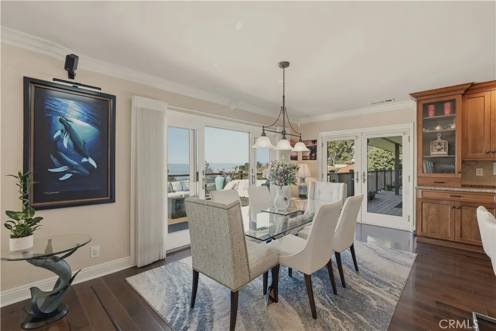 Experience the very best of coastal living in this move-in ready home where privacy, peace, and breathtaking views come standard. Nestled above the ocean, this residence is so private youll feel comfortable sleeping with the blinds open to star-filled skies and vibrant sunsets. Step through the grand double doors into an expansive, light-filled open floor plan that blends elegance with ease of everyday living. Walls of glass invite the ocean and hillside views into nearly every room, while the wraparound deck with built-in outdoor kitchen and retractable, lighted awning is perfect for entertaining day or night. The main level is designed for effortless single-level living. The oversized primary suite boasts its own balcony access, dual walk-in closets, and spa-like bath with freestanding tub and dual vanities. Just steps away from the main living area the heated pool and spa extend directly from the heart of the homeyour own serene sanctuary for lounging, swimming, or starlit soaks. Downstairs, guests are treated to comfort and privacy with a second en-suite bedroom plus two additional spacious bedrooms that share a Jack & Jill bath. Bonus rooms offer endless flexibility for an office, yoga studio, or playroom. This home truly embraces both grand entertaining and quiet relaxationfrom hosting fifty-plus guests in the lush lower garden to cozy family movie nights. The three-car garage, solar panels, EV charger, wine cellar, and fiber optic internet ensure modern convenience meets timeless luxury. Warm wood flooring, custom details, and thoughtfully designed spaces make this a