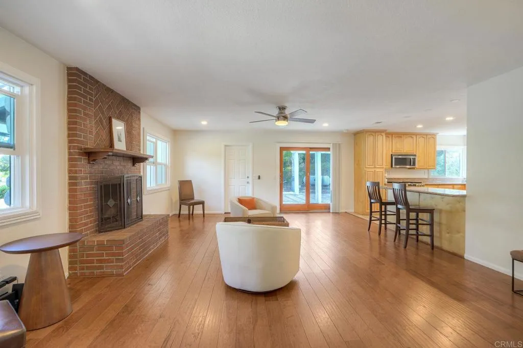 This single-level custom home is located in Fallbrook. This property offers a unique blend of comfort, space, and privacy. The home features 3 bedrooms and 2.5 baths, situated on a spacious 42,000+ sq ft lot. Key highlights include a large country-style kitchen equipped with stainless steel appliances and a new gas range/oven, ensuring a modern and functional cooking space. The property also boasts a new roof, providing peace of mind for years to come. Inside, you'll find a welcoming family room and a formal entry leading to the living room. The bedrooms are spacious, with a particularly large primary bedroom offering a comfortable retreat. The home has been updated with upgraded doors and windows, enhancing both aesthetics and energy efficiency. Flooring throughout includes elegant hickory plank, durable tile, and cozy carpet in the bedrooms. Additional interior features include granite countertops, two wood-burning fireplaces in the family and living rooms, plenty of storage space. Practical amenities such as an extra-long garage accommodating 3 cars, central AC, and ceiling fans are also included. The exterior of the property is equally impressive with fully irrigated landscaping, featuring a charming small orchard. This orchard includes a variety of mature fruit trees such as orange, grapefruit, plum, lemon, lime, pomegranate, and pear, offering fresh produce right at your doorstep. You'll love entertaining on the ample outdoor patio. The home's central location in Fallbrook provides easy access to downtown shopping and is conveniently close to the 15 & 76 freeways, bal