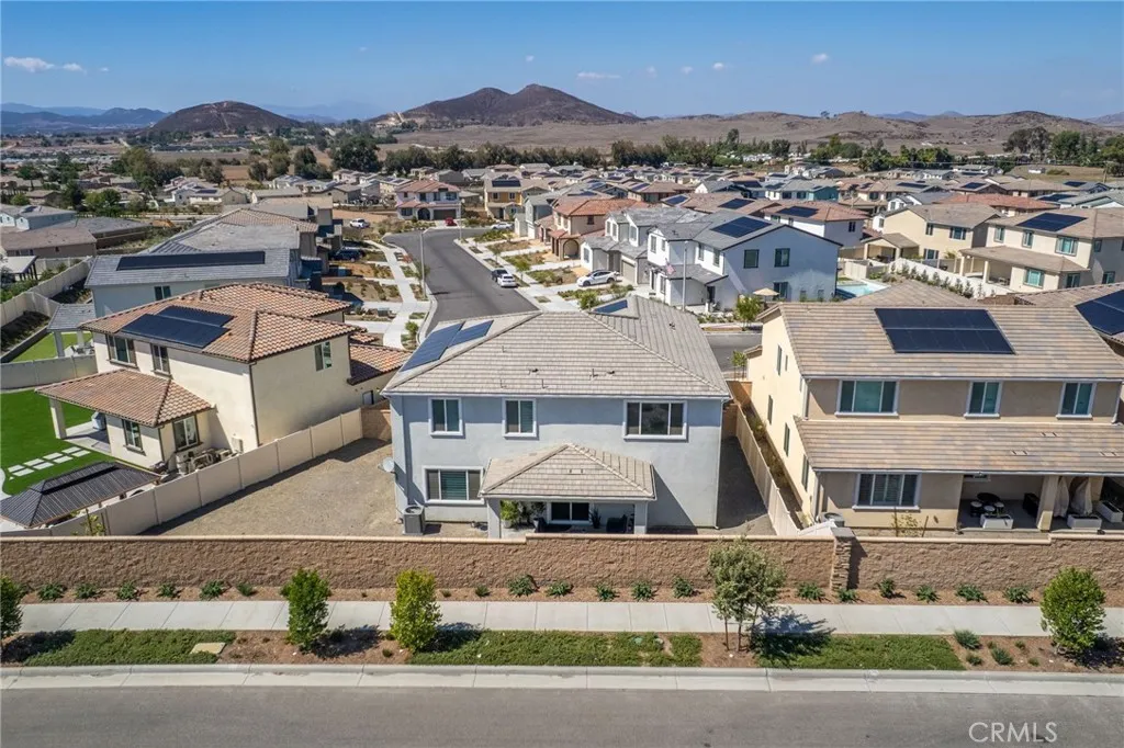 Seller is relocating and must go now! Price for quick sale. Also known as 34316 Pink Place this is a stunning new construction completed in 2023 with only one owner. Located in the desirable Viola at Siena community, this Plan 11 residence offers the perfect balance of modern design, functionality, and comfort. This expansive two-story home features 5 bedrooms, 3 bathrooms, and a spacious 3-car tandem garage. The inviting front porch entry leads to a thoughtful floor plan designed for todays lifestyle. The first floor includes a private bedroom and full bath, ideal for visiting guests or extended family. The heart of the home showcases an open-concept great room, dining area, and chefs kitchen with a large islandall seamlessly connected to the covered outdoor living space, perfect for entertaining and indoor/outdoor living. Upstairs is designed for connection and relaxation, offering a large loft, a tech space, and three secondary bedrooms that share a generous bath. The luxurious owners suite is filled with natural light and features a spa-inspired bath with soaking tub, separate walk-in shower, and an oversized walk-in closet. Thoughtful design upgrades elevate the home, including hard surface flooring in the main living areas downstairs, quartz kitchen countertops with full tile backsplash, a slide-in range, and a wall oven with built-in microwave. Energy efficiency is top of mind with paid-off solar panels, offering long-term savings and sustainability. This home is move-in ready and located in the heart of French Valley, close to award-winning schools, shopping, dining