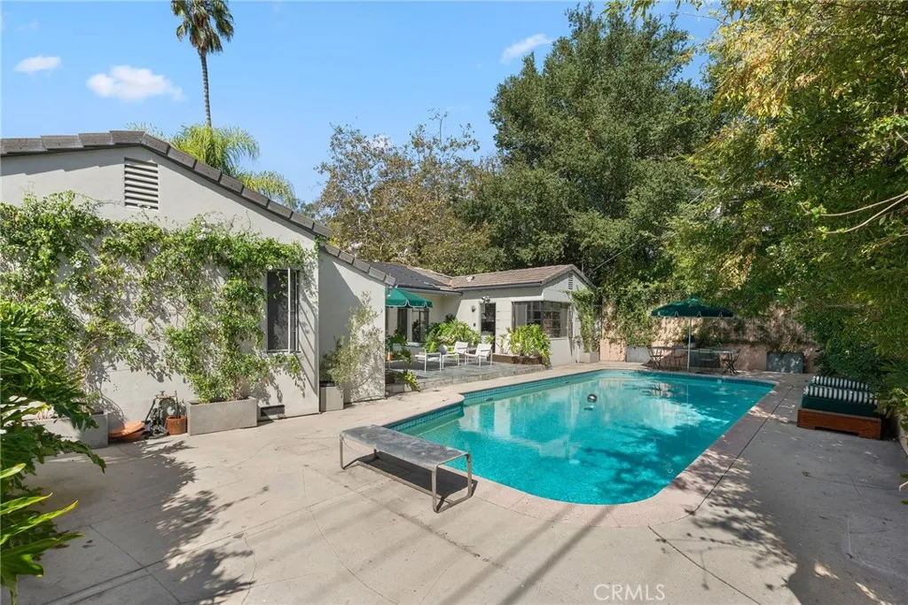 Mid-Century Gem with Sunset Views in the Heart of Los Feliz. Tucked away on a serene cul-de-sac in one of Los Felizs most sought-after neighborhoods, this stunning 1950 contemporary pool home offers the perfect blend of classic charm and modern living. Enjoy breathtaking sunrise and sunset views from this private oasis, located just moments from world-class shopping, dining, entertainment, and parks. Step inside to an open and sun-drenched floor plan where the spacious living and dining areas are anchored by a picture-frame window that perfectly showcases the sparkling blue pool and surrounding greenery. The oversized family room invites effortless relaxation and entertaining, with dramatic floor-to-ceiling windows, custom built-ins, and automatic curtains for added comfort and convenience. At the heart of the home, a generous chefs kitchen features abundant cabinetry, stainless steel appliances, and ample counter spaceideal for casual meals or hosting guests. The primary suite offers a peaceful retreat with its own ensuite bath, while two additional bedrooms provide generous storage and comfort. Additional highlights include ceiling fans throughout, laundry room, recessed lighting, new electrical systems, a tankless water heater, and a versatile office/storage room just off the poolperfect for remote work or a creative studio space. Whether you're hosting a summer soire or enjoying a quiet evening under the stars, this Los Feliz treasure offers the ideal setting for every occasion. Homes like this are raredont miss your chance to make it yours.
