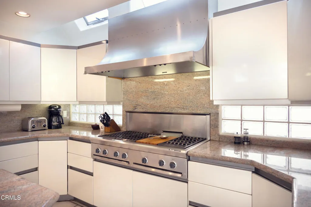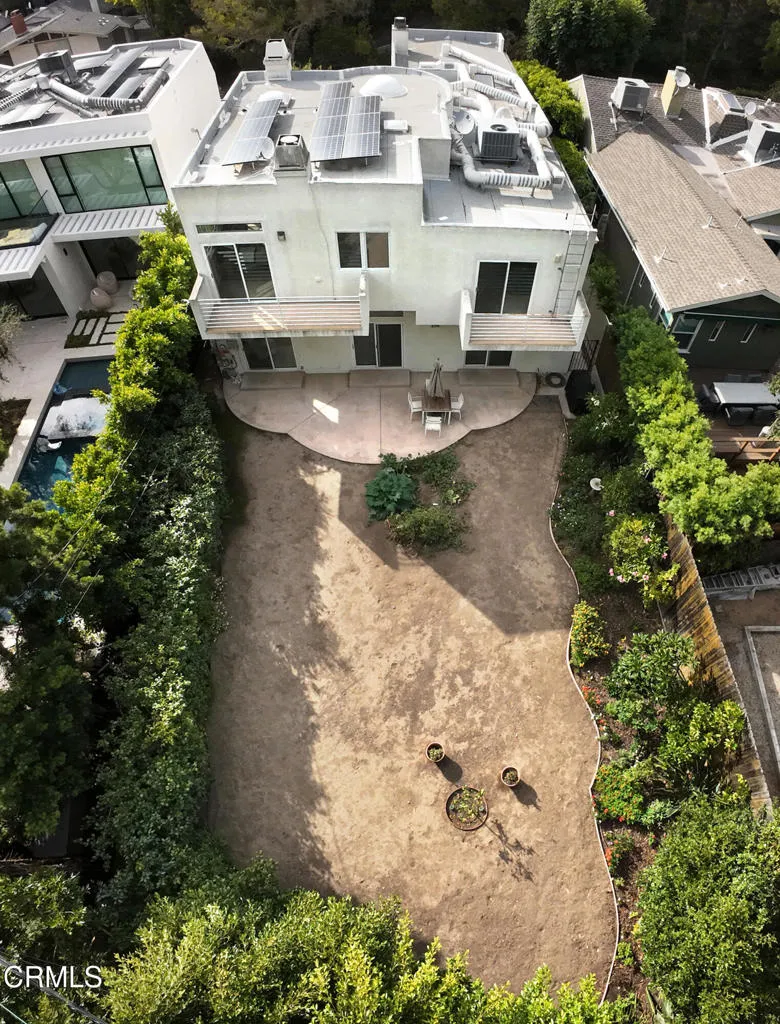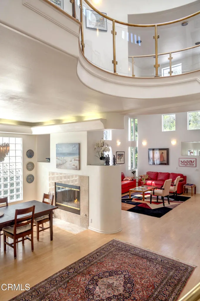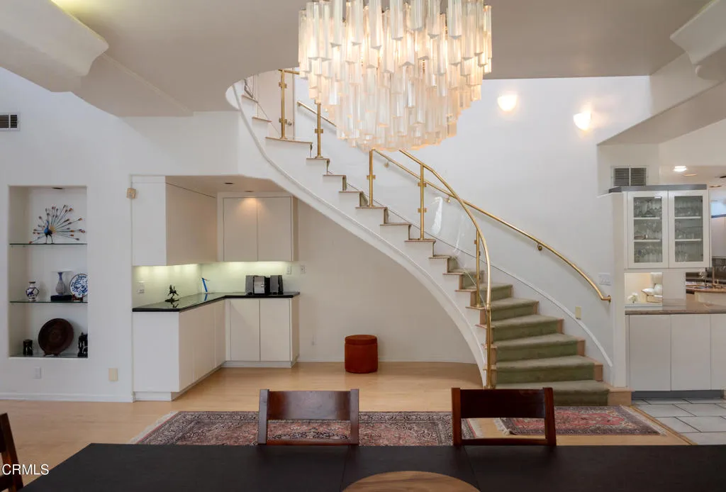 Secluded in the heart of Brentwood, this Art Deco Modern-style home was extensively remodeled & enlarged in the early 90's, features 4 or 5 bedrooms and 3.5 bathrooms. It offers spacious living areas filled with natural light, combining ample windows while maintaining privacy. As you enter, the home unfolds with high ceilings, prominent lines, a charming balcony, and a glimpse of the backyard. Each room is generously sized, with the living room showcasing lofty ceilings, plenty of windows, stylish design, and a dual-sided fireplace shared with the dining area. The dining space is enhanced by ambient lighting, a stunning chandelier, and a beautiful staircase with a balcony. From there, you flow into the kitchen and family room, which leads to the backyard. The large kitchen offers granite countertops, dual sinks, a spacious island, a breakfast bar, and a walk-in pantry. The cozy family room is an ideal spot to relax and take in the yard. The backyard boasts lush plants, ample space for entertaining, and with the addition of a lawn, it will complete the setting. Upstairs, an elegant stairway and landing overlook the lower level to three bedrooms and an office. All bedrooms are spacious and well-separated. The primary suite features high ceilings, a walk-in closet, a fireplace, and a large bathroom. Upstairs also features two more bedrooms and an office/5th bedroom, which includes a fireplace and a great view of the neighborhood. In addition, the home offers solar panels, a backup battery, and an electric car charger.