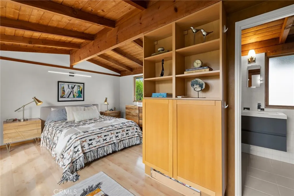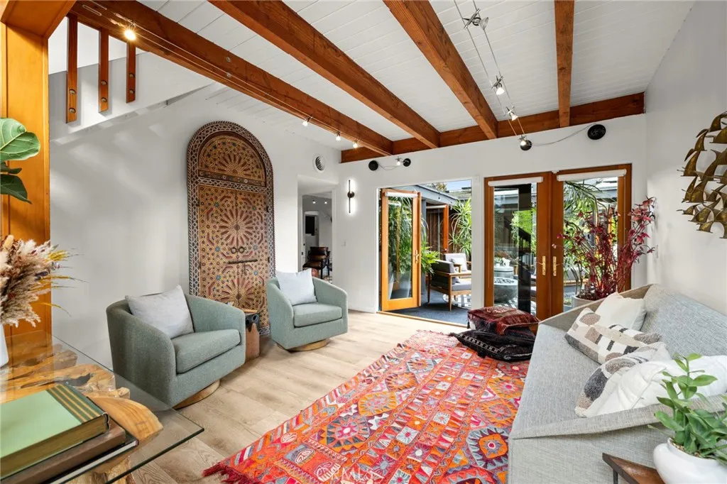 A rare and remarkable interpretation of Cliff Mays vision, this expanded Rancho Estates residence pushes the boundaries of classic California modernism while preserving every ounce of its soul. Nearly 2,300 square feet of thoughtfully designed space unfold across two levels, offering a flexible and functional floor plan that lives large without losing the intimacy and indoor-outdoor harmony that define Mays work. Here, space is never a compromise, its a celebration. The homes post and beam architecture creates distinct zones for connection and retreat, with 3 spacious bedrooms, 3.5 baths, a dedicated office / creative space, and 3 versatile living areas. The flow is effortless: a formal living room, den, and expansive great room each open directly to the central courtyard, where sunlight and firelight blur the boundaries between inside and out. A minimalist chefs kitchen with a quartz-topped island anchors the main living space, ideal for both daily life and entertaining, while a well-appointed butlers pantry and laundry area with additional sink and counter space adds everyday practicality. Each room extends into its own outdoor experience, amplifying the homes connection to nature. The upstairs suite features a sunny private balcony, the front bedroom opens to a tranquil meditation garden and infrared sauna, and the great room connects to an ipe deck built for entertaining, a glowing central courtyard with firepit and a striking heated lap pool. The homes expansion delivers not just square footage but an elevated lifestyle: a serene primary suite with dual closets and ens