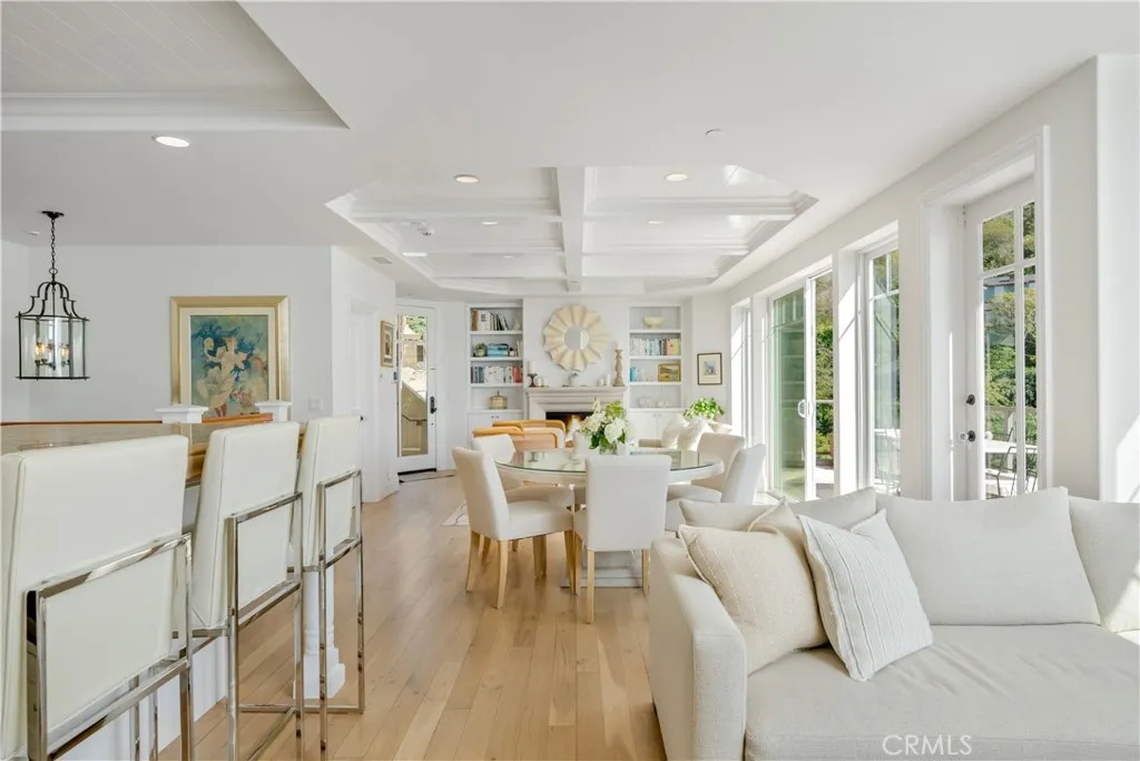 A stunning coastal Chris Light-designed residence, perfectly positioned to capture some of the most breathtaking, panoramic ocean views Laguna Beach has to offer. The main level of this private residence lends itself to everyday modern living as well as entertaining in style, with two distinct and spacious sitting areas offering remarkable flexibility of layout. The attached deck is large enough for hosting gatherings with a stunning ocean backdrop. A sophisticated and well equipped kitchen on this floor is anchored by a spacious island and features custom white cabinetry along with a suite of top-of-the-line appliances. The more formal of the two sitting areas flanks the fireplace, while the other features bespoke built-ins. A powder room completes this floor. On the lower level, the primary suite is a private Pacific-facing oasis, with a spacious, tranquil bedroom and a luxurious ensuite bathroom: a spa-like retreat, it is clad in Carrara marble. The dedicated balcony is yet another vantage point for taking in the magnificent surroundings of this property. Two secondary bedrooms of ample proportions and a guest bath can also be found on the lower level. Refined finishes abound throughout this home, from hardwood flooring to natural stone and classic millwork details including coffered ceilings. Whole house highlights include an elevator which connects all levels, air conditioning throughout, updated appliances, and built out closets. Sited on a quiet street, this residence offers privacy while located just minutes away from Lagunas vibrant downtown, its renowned beaches,