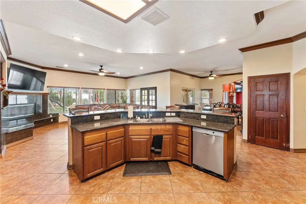 Welcome to Your Dream Estate in the Heart of Romoland! Situated on just over an acre of land in a highly desirable neighborhood, this exceptional property offers the perfect blend of elegance, functionality, and future potential. From the moment you arrive, youll be captivated by the stunning stoned gated exterior and the impressive grand entrance that sets the tone for what lies beyond. Step inside and be greeted by a spacious, light-filled foyer that opens into an expansive and thoughtfully designed floor plan. The formal dining room provides ample space for large gatherings, making it ideal for entertaining family and friends. Adjacent to the dining area is the open-concept kitchena true chefs dreamfully equipped with a stove, oven, dishwasher, and refrigerator. This culinary space seamlessly flows into the living and dining areas, ensuring no moment is missed while cooking or entertaining. Off the dining area, youll find a beautifully crafted custom office featuring rich wood built-insperfect for working from home without sacrificing a bedroom. For added flexibility, this space can easily be converted into a 6th bedroom, offering adaptability to suit your familys needs. The primary suite is a serene retreat, located down the hall for maximum privacy and featuring picturesque views of the backyard. The en suite bathroom is your personal spa oasis, complete with a soaking tub, dual vanities, a walk-in shower, and two oversized walk-in closets. The additional bedrooms are all generously sized and thoughtfully positioned to accommodate a growing family or guests comfortably