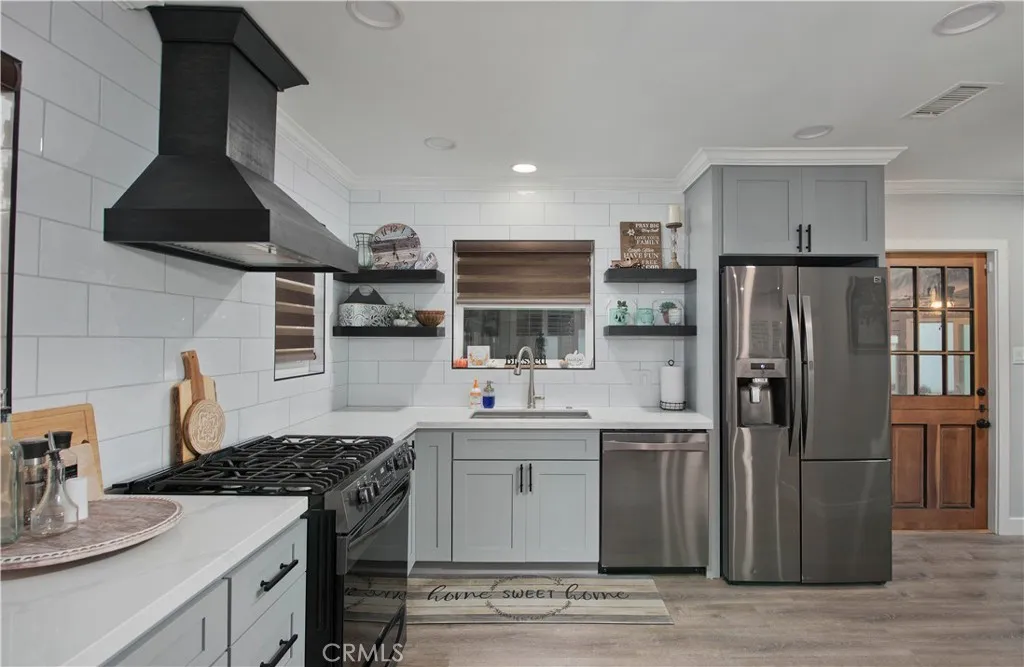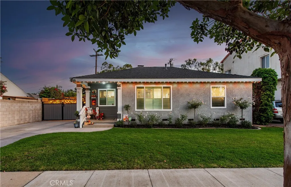 Welcome to this beautifully renovated single-story home located in Long Beachs highly desirable South of Conant neighborhood. Offering a total of 1,644 sq.ft. of living space, this property includes a thoughtfully upgraded main home, a versatile enclosed patio, and a garage converted into a fully functional studio.The main home offers 969 sq.ft. with 2 bedrooms and 2 bathrooms. From the moment you arrive, youll be charmed by the homes inviting curb appeal, complete with a front porch, fresh exterior paint, newer windows and fascia board and beautifully landscaped front and back yards. A brand-new roof installed in 2025, updated gutters and downspouts, and a steel-framed driveway gate add to the homes durability and peace of mind. For year-round ambiance, the decorative lighting system, operated via wifi, illuminates both the front and back of the home. Inside, a warm and inviting interior highlighted by newer luxury vinyl flooring throughout, crown molding, high baseboards, recessed lighting, and plantation shutters. A cozy fireplace with a barnwood beam mantle anchors the living area. The custom kitchen is a true showstopper with a large center island, quartz countertops, subway tile backsplash, stainless steel appliances, modern cabinetry with pots-and-pan drawers, and a pantry with a built-in coffee station. The hallway bathroom is thoughtfully updated with a modern farmhouse-industrial style, decorative tile accents, and a sleek vanity, while one bedroom enjoys a private en-suite bath. Energy-efficient features include solar panels, newer tankless water heater, newer in