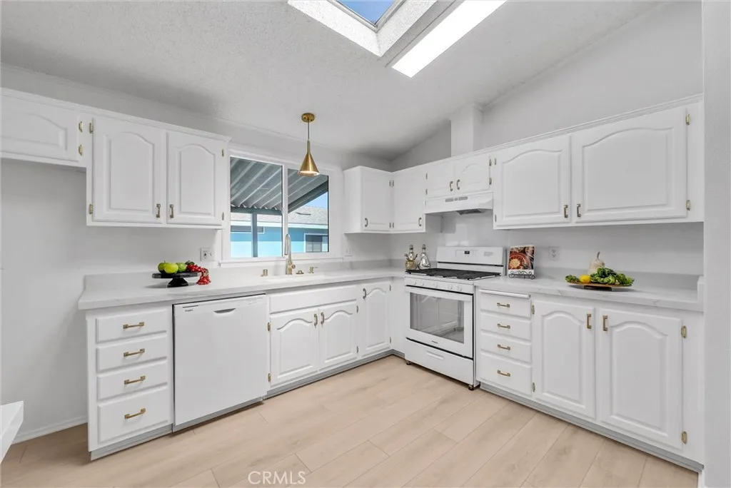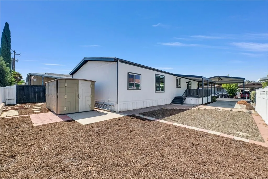 Discover refined mobile home living at its finest in this meticulously remodeled 2-bedroom, 2-bathroom residence within the prestigious Creekside Mobile Home Estates. This 1,680 square foot sanctuary showcases sophisticated design elements throughout, featuring an expansive living room flowing seamlessly into an elegant dining area. The gourmet kitchen serves as the home's crown jewel, boasting premium gas range cooking, pristine white cabinetry complemented by stunning quartz countertops, and a functional kitchen island perfect for culinary adventures. A generous walk-in pantry provides exceptional storage solutions, while the convenient inside laundry adds everyday luxury. Exquisite light oak luxury vinyl flooring extends throughout the home, paired with raised panel doors that enhance the upscale aesthetic. Both spacious bedrooms feature practical mirrored wardrobe doors, maximizing space and natural light. The completely remodeled bathrooms reflect contemporary style and functionality. Climate-controlled comfort comes courtesy of central air and heat systems, while the covered patio extends your living space outdoors. Protected parking ensures convenience and security for your vehicles. The community amenities elevate your lifestyle with a comprehensive recreation center featuring billiard room, library, and game room. Residents enjoy access to a sparkling swimming pool, relaxing spa, plus fully-equipped kitchen and dining facilities for entertaining. Located at Space 26 on Temescal Canyon Road, this property offers proximity to essential conveniences including nearby g