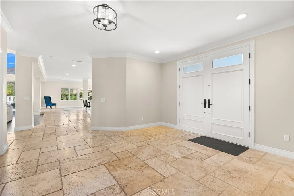Recent Price Improvement!! Introducing a remarkable horse property, just 2.5 miles from shopping, dining, and schools in Rancho Santa Margarita. This stunning residence boasts panoramic 360-degree views and includes private stables featuring 9 stalls and a horse arena. The horse facility has installed professional footing, barn facility, and extra parking, The open floor plan is flooded with natural light, complemented by a kitchen equipped with granite countertops, stainless appliances, and a walk-in pantry, seamlessly connecting to the dining and living areas with a custom fireplace and built-in shelving. The main floor also features a separate guest suite and bath plus and an office with built-in cabinetry. In addition, a specially designed media room enhances entertainment options. Upstairs, the luxurious master suite showcases a remodeled bath with a soaking tub and two walk-in closets plus 3 Aditional bedrooms and a spacious laundry room. Enjoy breathtaking views from the master and secondary bedroom balconies. The expansive resort-style backyard, ideal for relaxation and recreation, includes a meandering pool, spa, tropical landscaping, 12 fruit trees, putting green, and synthetic grass. A large fenced grass area is also available on the property for gated RV access. Notable features include seller-owned solar panels, Generac whole house generator, new HVAC and a Quick Tesla Charger. Spanning approximately 2.5 acres, the lower area is dedicated to equestrian activities with a professionally designed horse arena and additional stable facilities, including ample parkin