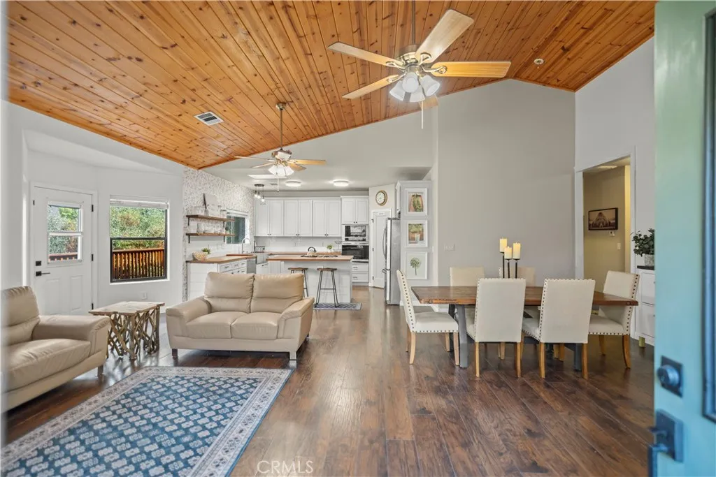 Escape to your perfect mountain sanctuary in the highly desirable Pine Mountain Club (PMCPOA) community. This beautifully updated, move-in-ready home offers a blend of rustic charm and modern convenience, providing the ultimate year-round retreat. This spacious residence features 3 bedrooms and 2 bathrooms, encompassing 1,827 sq. ft. of living space on a generous 10,412 sq. ft. lot. The interior boasts an open-concept living area with soaring vaulted wood-plank ceilings and rich wood flooring, creating a warm and inviting atmosphere. The gourmet kitchen is a chef's dream, complete with butcher block countertops, bright white cabinetry, and a full suite of stainless steel appliancesincluding the refrigerator, dishwasher, and microwave, all of which are included. The home also comes equipped with the washer and dryer in a dedicated laundry room. Step outside to embrace the natural beauty of the area. The property offers stunning mountain views and features a spacious deck, perfect for outdoor dining and entertaining. The large, private backyard is ready for your vision, complete with a greenhouse with potential for gardening enthusiasts. The property also includes a convenient two-car garage. Living in PMCPOA provides a hassle-free lifestyle with essential year-round services, including 24/7 security patrol, trash and recycling collection, road maintenance, and snow removal. For added peace of mind, Kern County Fire Station 58staffed with paramedics and equipped with a helipadis located within the community, ensuring prompt emergency response when needed. Blending custom comf