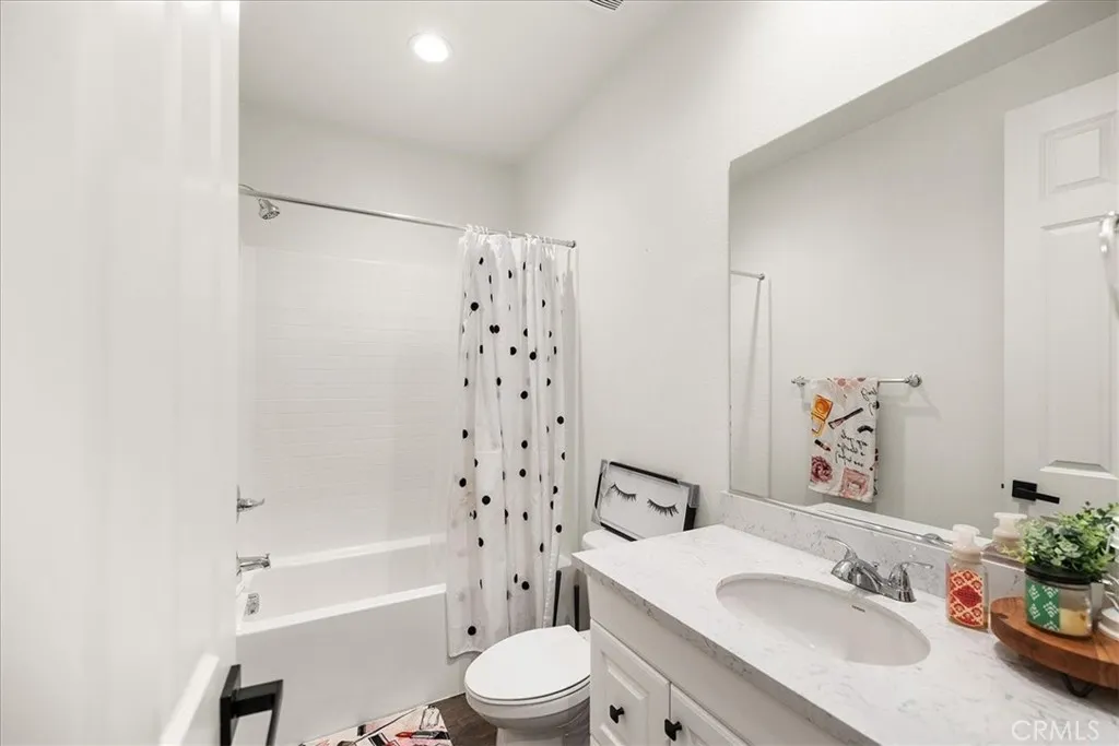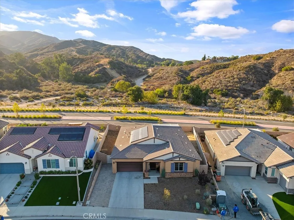 Welcome to this stunning Single-Story residence offering 2,514 sq. ft. of thoughtfully designed living space with 4 Bedrooms, 3 Bathrooms, perfectly blending functionality and luxury. With no neighbors behind and stunning views of the local mountains, this home has a peaceful feeling. Three of the Bedrooms are located in the front of the home, two of which are connected by a Jack and Jill bathroom, and one with its own hallway bathroom providing comfort for family or guests. The Primary Bedroom Suite is tucked away at the back of the home offering added privacy. The Primary suite feels like a peaceful retreat with a custom barn door leading into a spa-like bathroom featuring dual sinks, a walk-in shower, an oversized soaking tub, separate toilet room, and a spacious walk-in closet with custom shoe shelving. The heart of the home is the Gourmet Kitchen boasting white cabinetry, Carrera marble countertops, an extended center island/countertop, stainless steel appliances, a 36-inch commercial range top, and a professional-grade stainless steel sink. It is OPEN to the Family Room and Dining Area and promotes family gatherings and entertaining. There is a Good size walk-in Pantry for food storage. Practical upgrades include a three-car Tandem Garage equipped with a tankless water heater, 240V EV charging station and two 1,500-lb overhead storage racks. The laundry room is indoors, and comes with built-in shelving. PAID OFF SOLAR through SunRun and NO HOA are MAJOR added benefits! The Whole house fan helps cool off the home quickly and efficiently during the warmer months. There