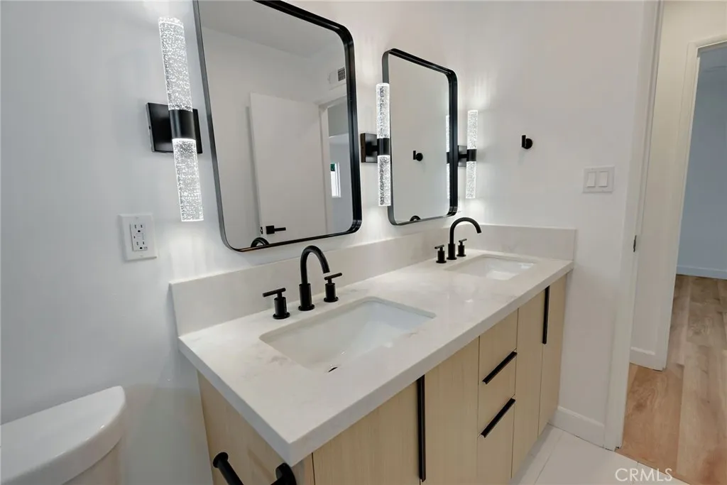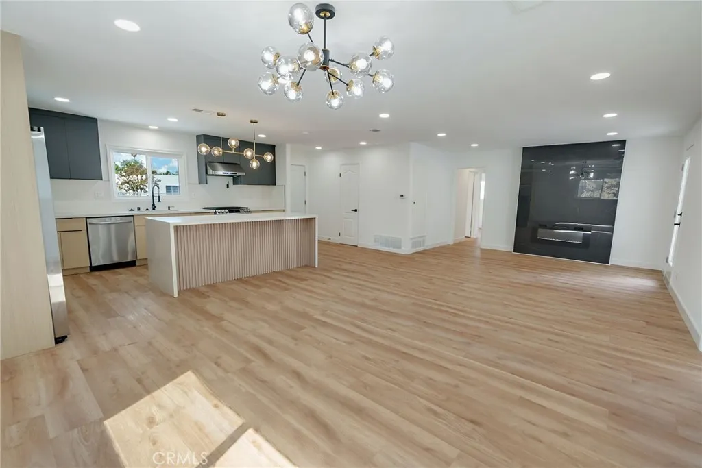 Fully remodeled 4-bed, 2-bath home in sought-after Woodland Hills. This modern retreat features high ceilings, recessed lighting and new waterproof luxury vinyl plank floors throughout. The open living area centers around a sleek fireplace and flows into a chefs kitchen with quartz countertops and stainless steel appliances with smart Wi-Fi features. The primary suite offers a large walk-in closet, backyard access and a spa-style bath with dual vanities, walk-in shower and standalone soaking tub. Three additional well-sized bedrooms are located on the other side of the house, surrounding a second luxurious bathroom. Enjoy sunny days by the pool in your private backyard oasis, and add outdoor dining and tropical landscaping for your California dream home. Upgrades include new copper plumbing, upgraded electrical panel (2014), Tesla solar panels, dual-pane windows, finished two-car garage with epoxy floors, newer HVAC and water heater. Conveniently located near the 101, Westfield Topanga, Kaiser and Warner Center - this move-in-ready home blends style, comfort and location.