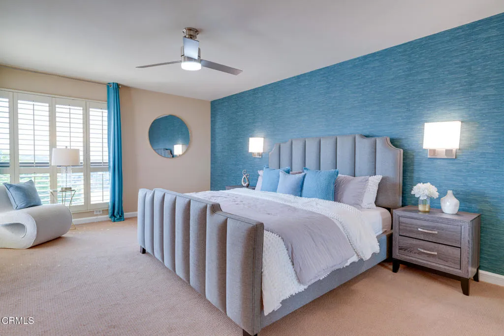 CThe family room opens up to the modern kitchen featuring Silas counter top, Blanco granite sink, stainless steel appliances, Bosch cooktop and solid wood cabinetry.The remodeled contemporary 1/2 bath powder room completes the main level. Upstairs offers 3 bedrooms, a primary spacious bedroom ensuite with beautiful views, 2 closets (one walk in), remodeled bathroom features Fleming lighted mirrors, dual sink, quality wood cabinets & drawers, custom shower tiling and plenty of storage. 2 additional bedrooms offer great lighting and share the chic modern bathroom off the hallway. The hallway/linen cabinets have ample storage with lighting and quartz countertop. Lower level has a finished bonus room w/ closet, a laundry space for a washer and dryer, cabinet and storage closet. Direct access to an oversize two and a half cars garage, plenty of storage cabinets. A full house water filtration system, central air & heat and wired security system.As you step into the private and luxurious resort-like backyard/patio you will enjoy the privacy of the hills and nature, great space to entertain dining al fresco and bbq's. The fancy Solara adjustable patio cover and 2 ceiling fans will surely keep you cool in the summer or can offer more sunshine to meet your preference. Community sparking pool, spa and lounge chairs under a shady trellis. This home shows true pride of ownership, quality workmanship, well maintained, immaculate move-in condition and with all the upgrades and modern amenities for today's comfortable living!